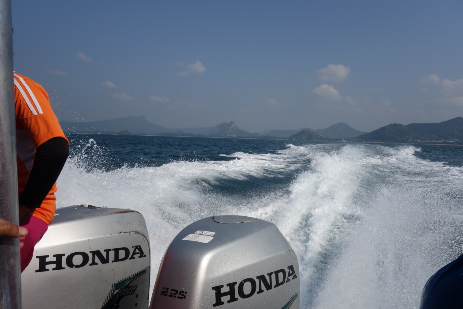 Unser Tourguide Mr Joh stellt sich kurz vor und dann klettern wir auch schon auf das Speed Boot, das uns heute von einer Insel zur anderen kutschen soll.