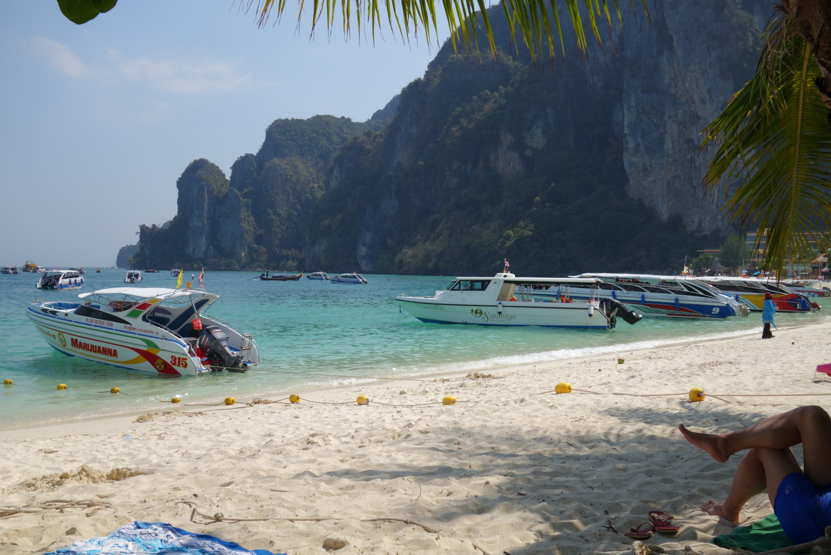 Erstes Ziel ist Bamboo Island, eine schöne kleine Insel mit weißem Sand Strand, türkisfarbenen Wasser und jeder Menge Touristen.