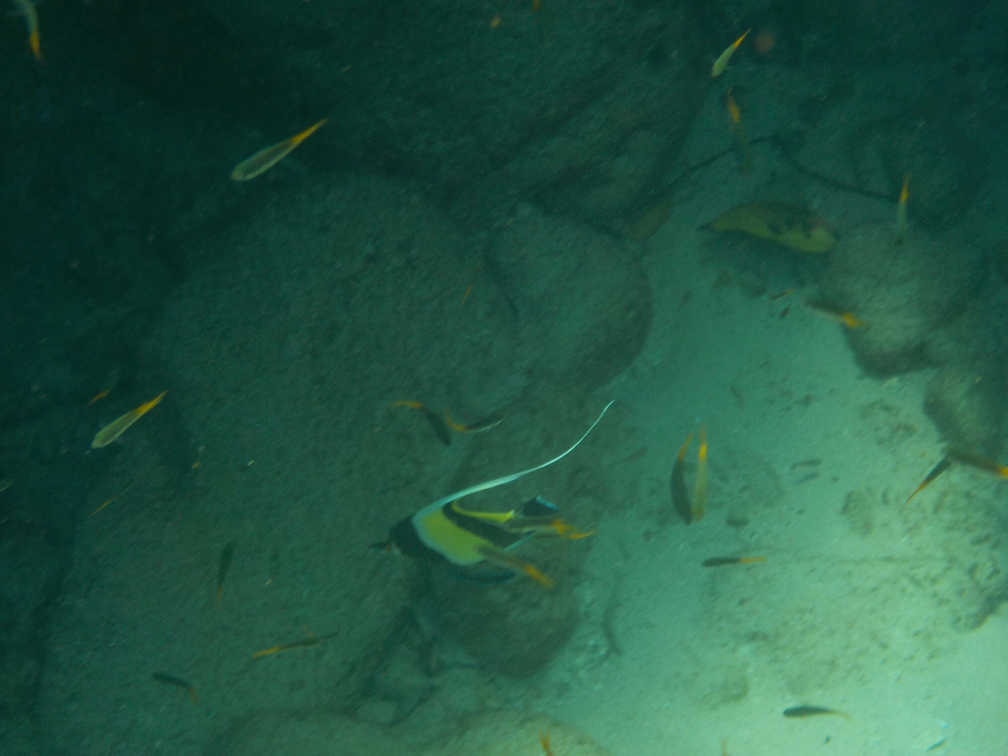 Ich teste die kleine Nicon Kamera anscheinend etwas zu lange, als ich mal ausnahmsweise nicht den Kopf Unterwasser habe und zu unseren Boot schaue, wird mir und Bonny wild zugewunken.