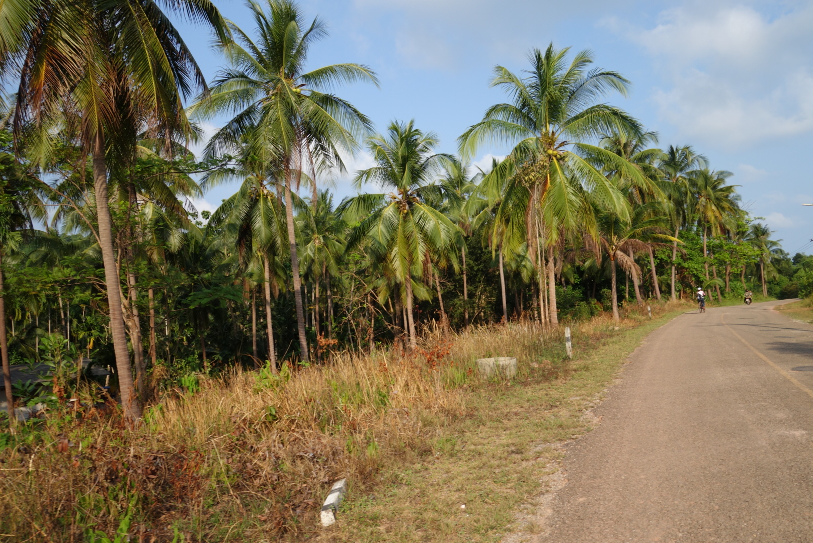 Sie hat sich mit einer einheimischen Frau unterhalten und diese könnte uns für 600 Bath pro Nacht einen Bungalow auf einer Kokosnuss – Plantage etwa 7 km entfernt von hier vermitteln.