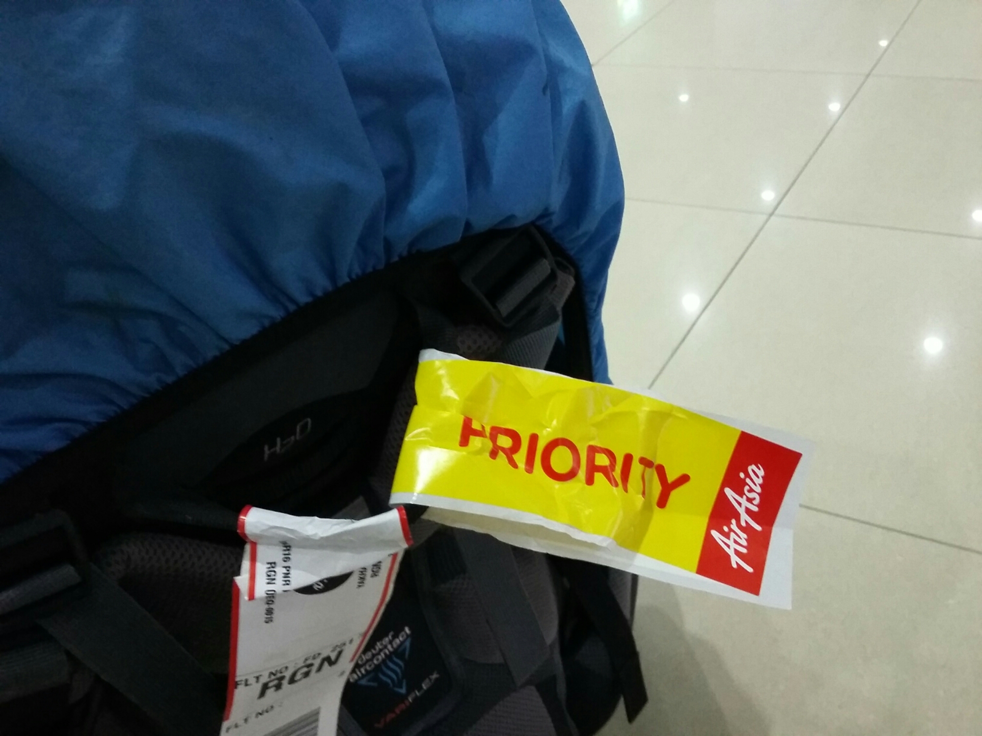 Un da wir ja aus irgend einem Grund Air Asia VIPs sind bekommt mein Rucksack zusätzlich einen Aufkleber mit dem beruhigenden Wort „Priority“ aufgeklebt.