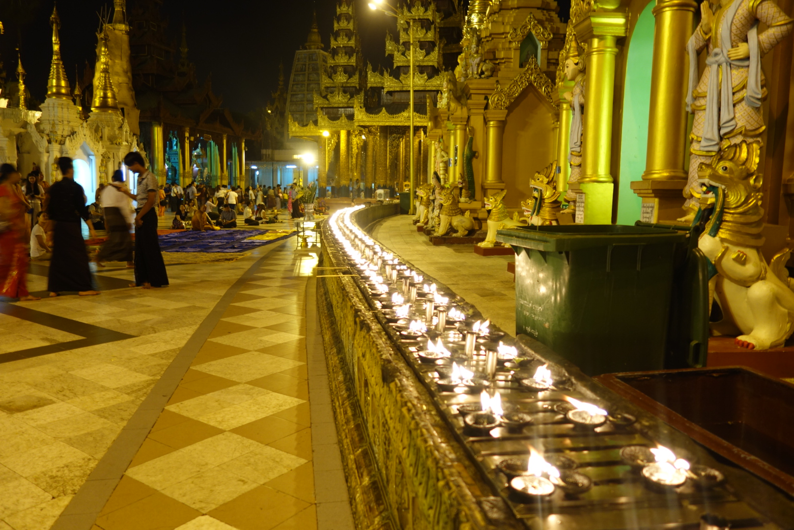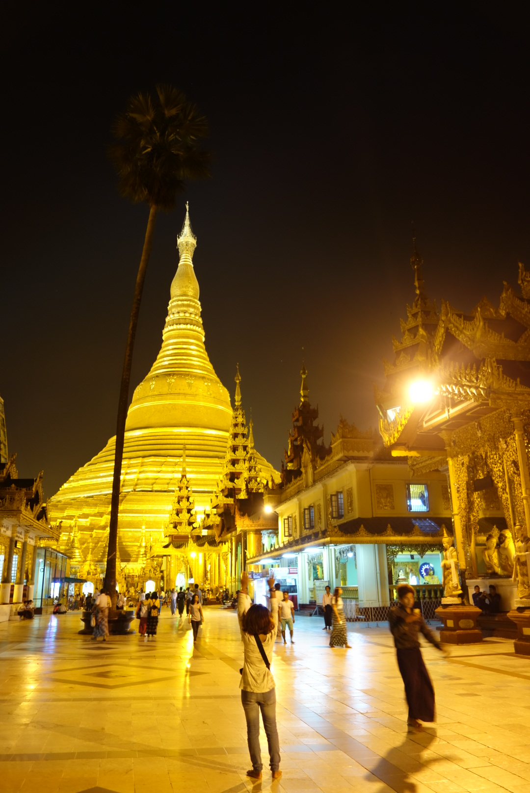 Der Shwedagon, auch Shwedagon-Paya ist der wichtigste Sakralbau und das religiöse ZentrumMyanmars in Yangon. Er gilt als Wahrzeichen des ganzen Landes und ist einer der berühmtesten Stupas der Welt. Erbaut auf dem stark befestigten und mit zwei Terrassen geschmückten Singuttara-Hügel, dem südlichsten Ausläufer der Pegu-Joma-Bergkette, überragt das Bauwerk die größte Stadt des Landes.
