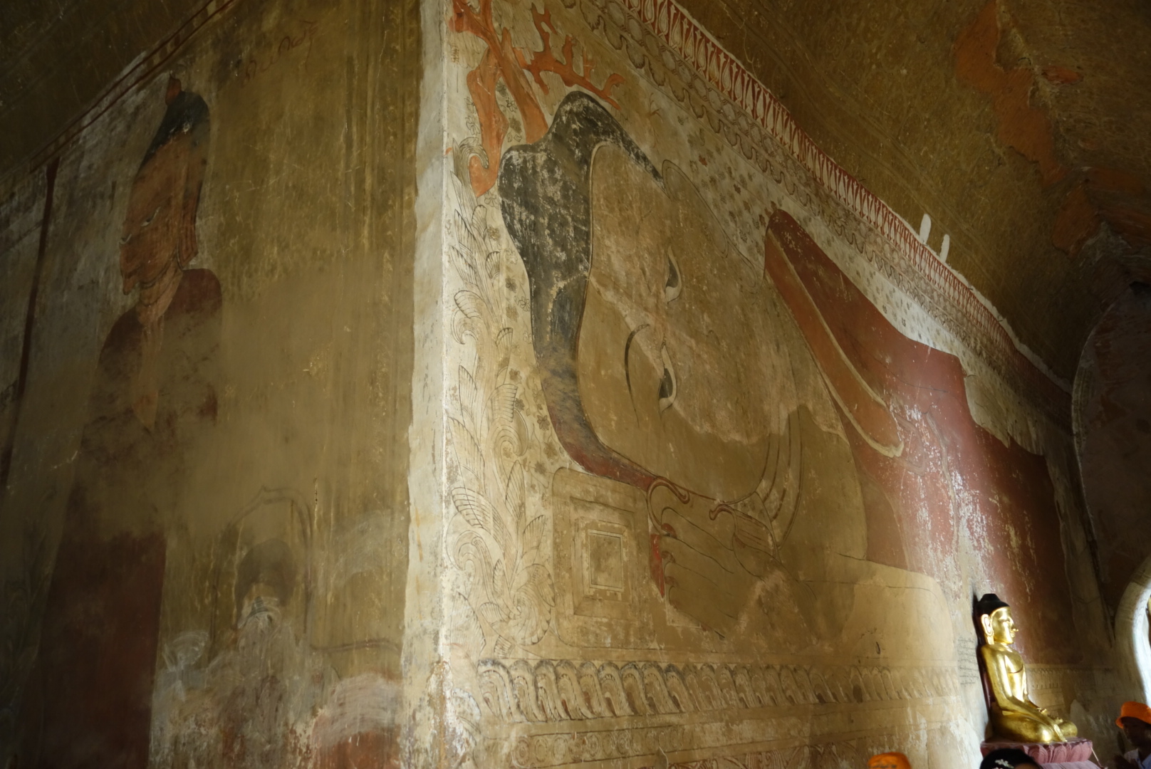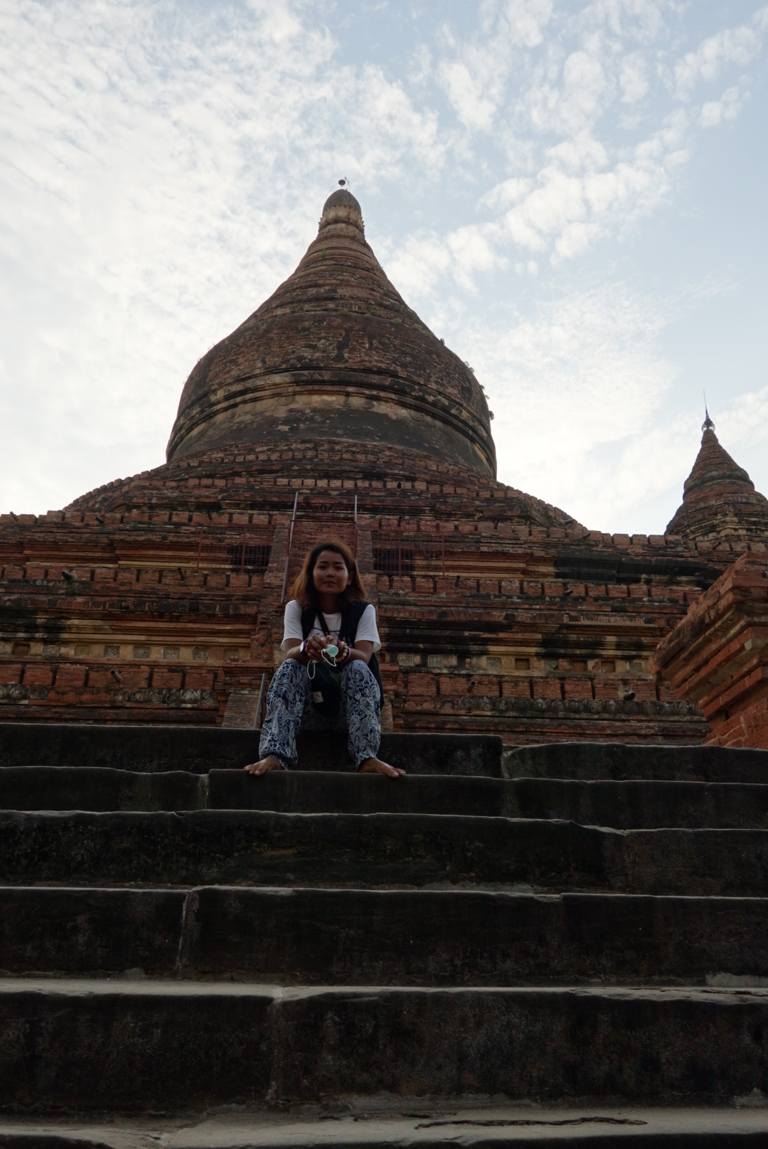 >>>>>ตอนนี้เราเริ่มเคลื่อนล้อไปตามทางอีกครั้ง และก็นัดเจอแม็กเนสอีกครั้งเพราะเค้าจะต้องเดินทางกลับไปทำงานต่อ จากนั้นบอสพาไปตามหาขุมทรัพย์ของเค้าตามแหล่งเจดีย์ที่เค้าทำตำแหน่งเอาไว้ ไปเรื่อยๆจนเจอเจดีย์วิหารสุลามณี ที่แห่งนี้มีจุดเด่นที่จิตรกรรมฝาผนังเก่าแก่ให้ได้เดินชมกันแบบเพลิน จากนั้นเราขับตามล่าขุมทรัพย์ไปจนจุดสุดท้าย ที่ Sin byu shin complex ที่นี่เงียบมากไม่มีใครขึ้นมา เราหาขุมทรัพย์จนเจอ มันมุดอยู่ในรูและเป็นเส้นทางลึกลับแอบกลัวนิดหนึ่ง ทั้งมืดทั้งลึกเดินคดเคี้ยวเลี้ยวไปยาว จากนั้นรีบออกมาชมพระอาทิตย์ตก สักพักก็เริ่มมีนักท่องเที่ยวกลุ่มอื่นมาแวะเวียน แต่เนื่องจากพระอาทิตย์วันนี้โดนเมฆบดบังจึงทำให้ไม่สามารถมองเห็นพระอาทิตย์ลับฟ้าได้ แต่ไม่เป็นไร เรานั่งเอาวิวแทน แถมบอสก็เจอนักท่องเที่ยวชาวเยอรมันเช่นกัน เค้าดีใจที่ได้พูดภาษาบ้านตัวเอง คุยซะนานจนเราออกมาก่อนแล้วนั่งรอจนใกล้มืด บอสออกมาบอกรู้สึกมีความสุขที่ได้พูดเยอรมันอีกครั้ง จากนั้นเราก็กลับไปพักผ่อนเร็วขึ้นเพราะพรุ่งนี้ต้องตื่นตั้งแต่สี่โมงเช้าเก็บของออกเดินทางไปต่อยังจุดหมายต่อไป
