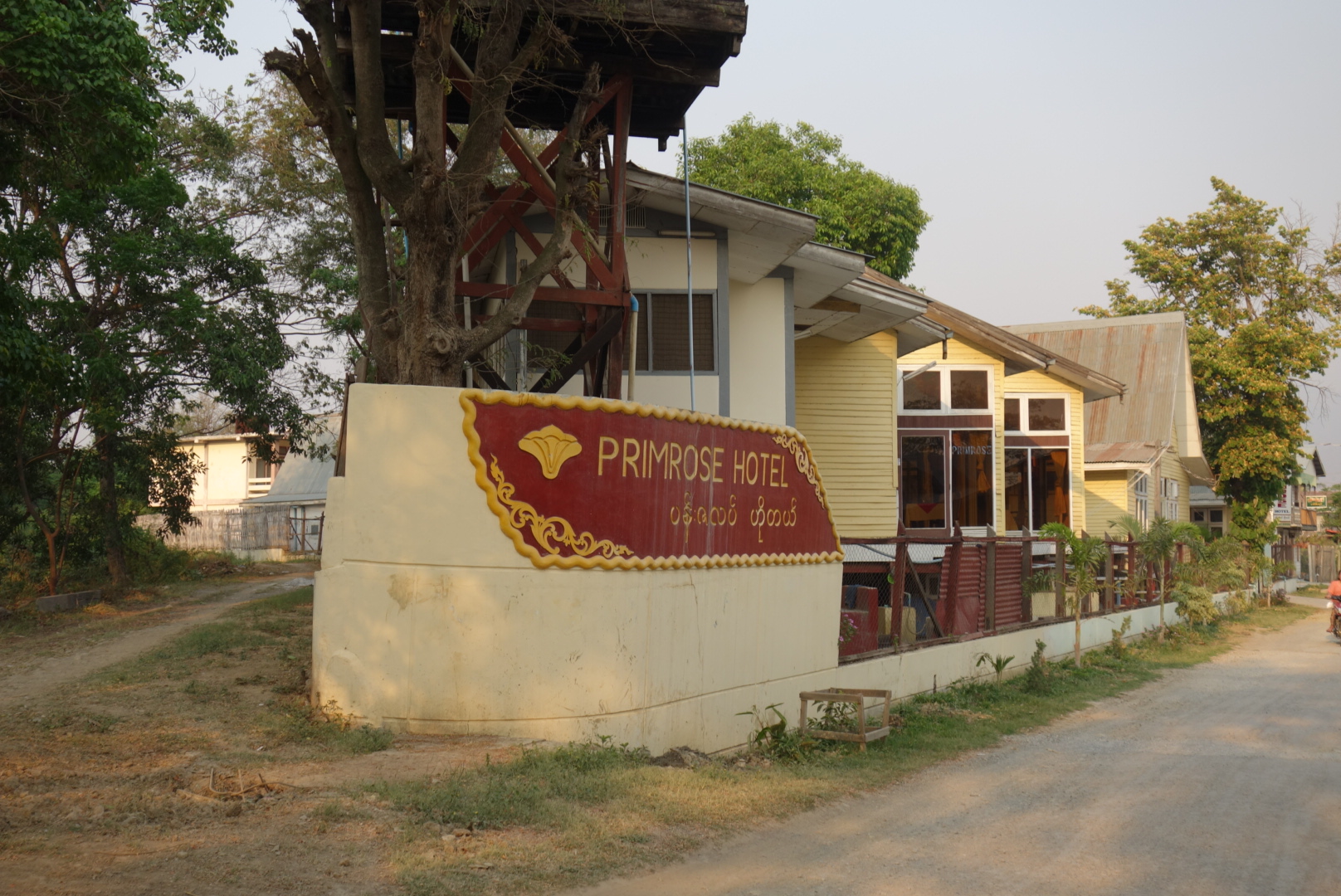 Nach einem ganzen Tag auf der Straße erreichen wir gegen 17 Uhr das „Primrose Hotel“ in Nyaung Shwe.