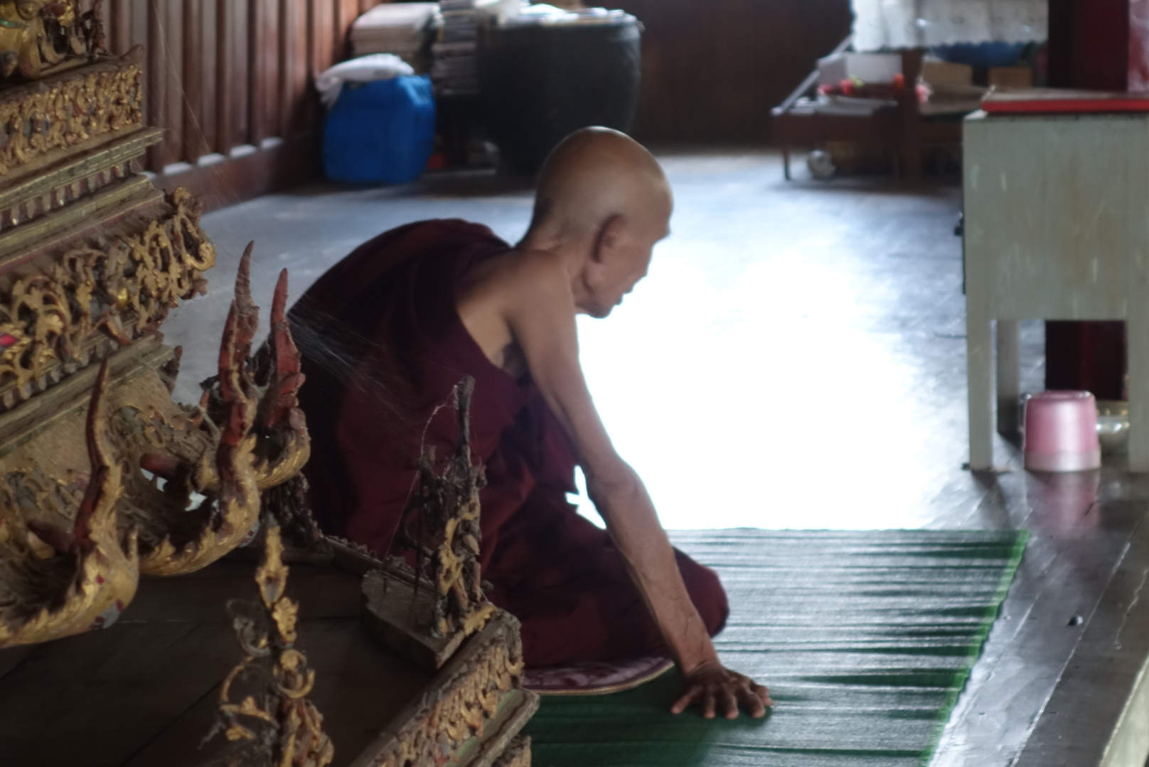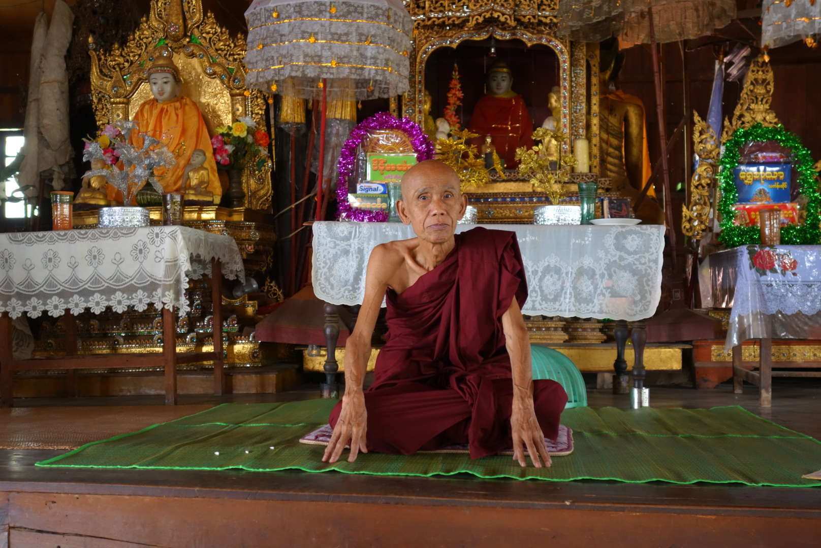 So erfahren wir unter anderm, das er schon 75 Jahre ist, der Tempel in dem er seit über 35 Jahren lebt seit 110 Jahren steht, er hier nur mit einem anderen Mönch und 2 Katzen, die jetzt Nachwuchs bekommen hat lebt.