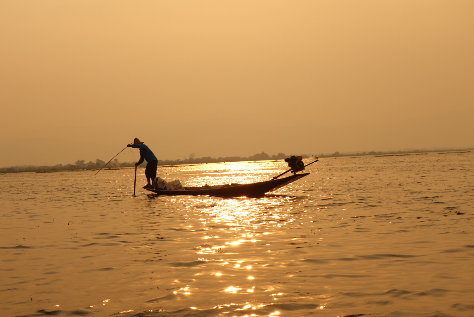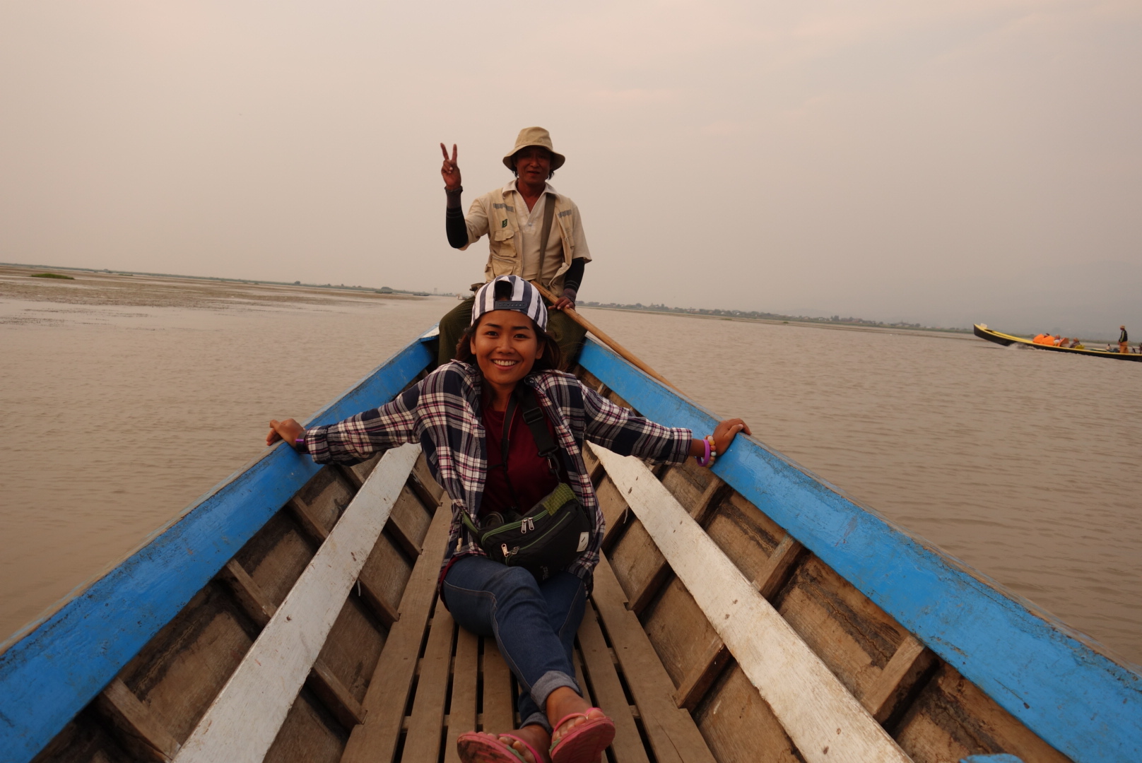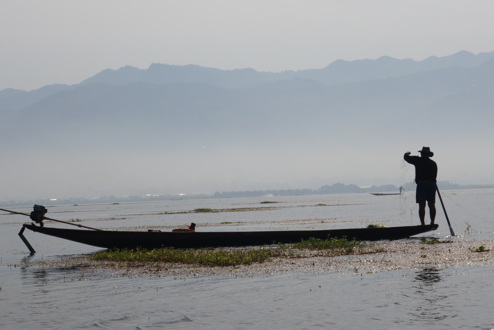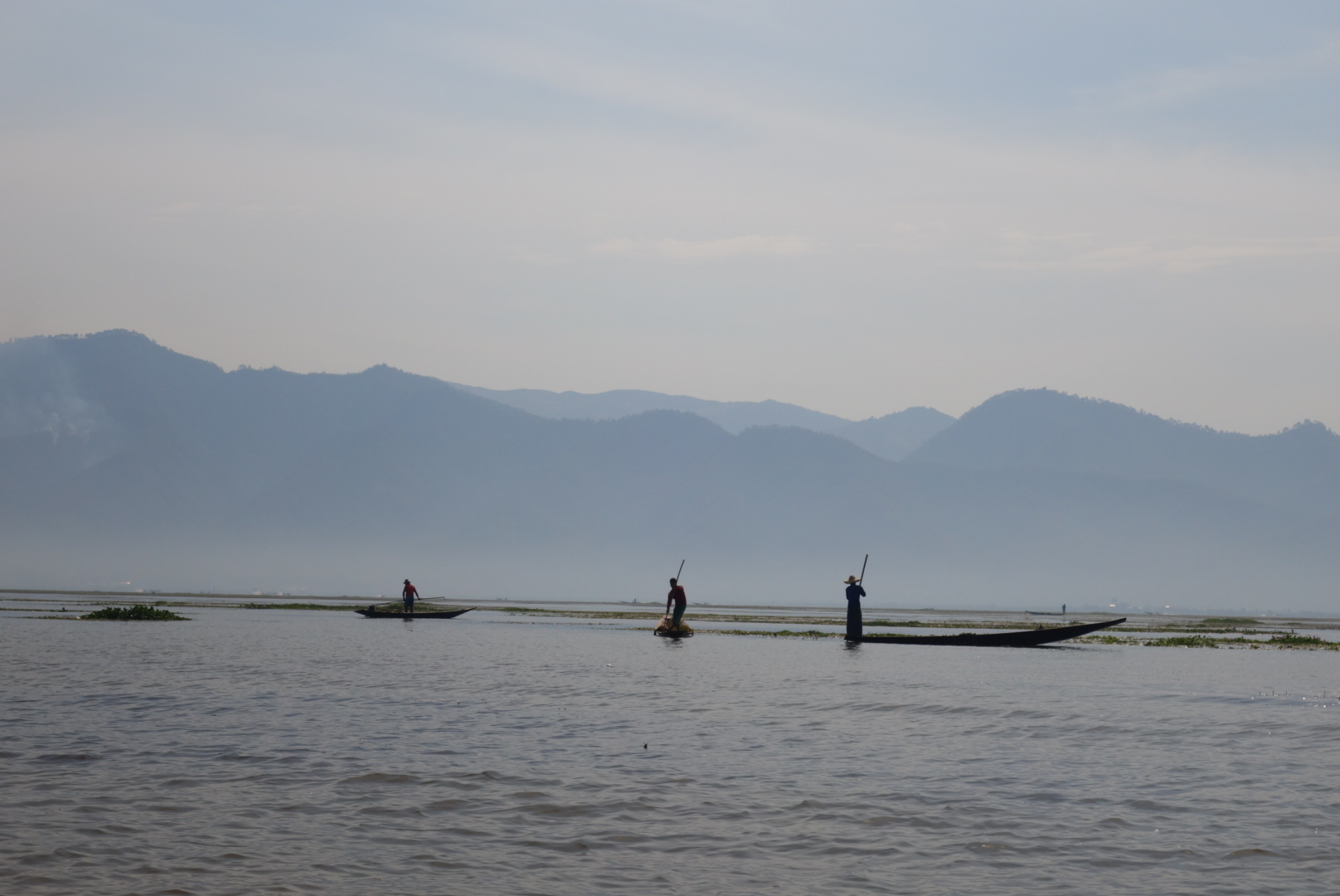 เช้าวันนี้เรามีนัดกับอินเลพี่คนขับจะมารับเราที่โรงแรม เรารีบอาบน้ำเก็บข้าวของ(กระเป๋า) เพราะเราจะย้ายห้องพักใหม่ และรีบเอากระเป๋าไปฝากไว้ที่เคาเตอร์ อย่าลืมทานอาหารเช้า ต้องใช้สิทธิ์ให้ครบเพราะค่าห้องค่อนข้างแพง เราทานอาหารเช้าเสร็จแล้ว ถึงเวลาแล้วแต่ยังไม่เห็นมีใครมารับเลย พอเดินออกไปข้างนอกเห็นพี่คนขับเรือมายืนรอที่หน้าโรงแรม อ่าว!แล้วไมไม่มีเจ้าหน้าที่คนไหนบอกเราเลยว่าพี่เค้ามารอ พี่เค้าขับมอเตอร์ไซต์มาคนเดียว ในใจคิดว่าคงอัดกันไป แต่ที่ไหนได้พี่เค้าพาเดิน โดยจูงรถมอเตอร์ไซต์นำหน้าเราไป เราก็รู้สึกผิดหวังนิดหน่อยไหนบอกว่ามารับไง (จริงๆเค้าก็มารับนะ55) จริงๆขับรถไปส่งที่ละคนก็ได้ แต่ไม่เป็นไรเดินก็เดินถือว่าออกกำลังกายยามเช้า อีกอย่างตลอดทริปที่ผ่านมาก็มีแต่เดินอยู่แล้ว (แอบผิดหวังนิดหนึ่งกับการบริการในครั้งแรก) เราเดินไปที่ท่าเรือที่มีเรือรับจ้างจอดรอบริการนักท่องเที่ยวอยู่เต็ม พี่เค้าก็จัดที่จัดทางให้เรานั่ง จะเป็นเก้าอี้ไม้ที่ตอกติดกับเรือ มีเบาะนุ่มๆให้นั่ง(ไม่ใช่เบาะเป็นหมอนรองนั่ง) มีผ้าห่มสำรองให้เราเผื่อไว้คลุมเวลาน้ำกระเด็นใส่ เรานั่งแบบไม่สนใจอะไรทั้งนั้น ทำตัวเป็นนักท่องเที่ยวที่ดี นั่งเงียบ เค้าพาไปไหนก็ไป ไม่เรื่องมากปล่อยให้พี่เค้าทำงานของเค้าได้เต็มที่ คือขับเรืออย่างเดียว ตั้งแต่เริ่มออกเรือแรกๆจะผ่านแม่น้ำแคบๆแล้ววิ่งออกสู่แม่น้ำกว้างขึ้นเรื่อยๆ จนทะลุที่ทะเลน้ำจืดอันกว้างใหญ่ มองไปทางไหนก็เห็นแสงหมอกยามเช้ากับท้องฟ้าอันสดใส นกเป็ดน้ำลอยคอหาปลาอยู่เป็นกลุ่มๆ บ้างก็บินว่อนอย่างมีความสุข ออกไปเริ่มไกลหน่อยก็จะเริ่มเห็นชาวประมงที่ยืนอยู่บนเรือ เท้าเกี่ยวใบพายข้างหนึ่ง มือจับแห่รอจังหวะหว่านแห บ้างกำลังดึงแหขึ้นมาเพื่อดูผลงาน ระหว่างทางก็จะเห็นเรือรับจ้างพาชาวบ้านหรือนักท่องเที่ยวเข้าและออกภายในแม่น้ำ ระหว่างเส้นทางนี้มันคืออะไรที่แบบพูดไม่ออก ได้แต่นั่งทึ่งอยู่บนเรือ มองไปสุดลูกตาก็เป็นวิวภูเขา คือตอนนี้ลืมไปหมดแล้วว่ากำลังอยู่ในโหมดเซ็งอยู่ เหมือนเรากำลังนั่งดูหนัง3D อยู่ ที่ผู้สร้าง CG กราฟฟิก ได้สมบูรณ์แบบมากๆ เหมือนจริง100% ในใจตอนนี้มันว่างเปล่า กำลังลองลอยอยู่ในภวังค์ความฝัน ยิ่งมองยิ่งฟิน รู้สึกว่าไม่เสียแรงที่ข้ามร้อน ข้ามเขา มายังที่นี่ พ้นจากทะเลสาบแล้ว เรือเริ่มวิ่งเข้าสู่หมู่บ้าน ซึ่งคนที่นี่เก่ง คนที่นี้เป็นชาวอินคา เชื้อชาติมอญ สังเกตุได้จากสัญลักษณ์หงส์ที่ตั้งไว้กลางแม่น้ำก่อนเข้าสู่หมู่บ