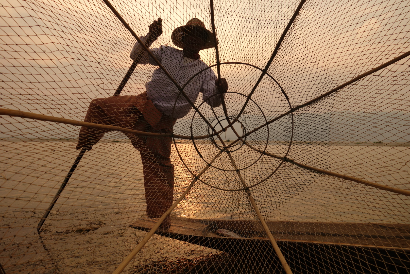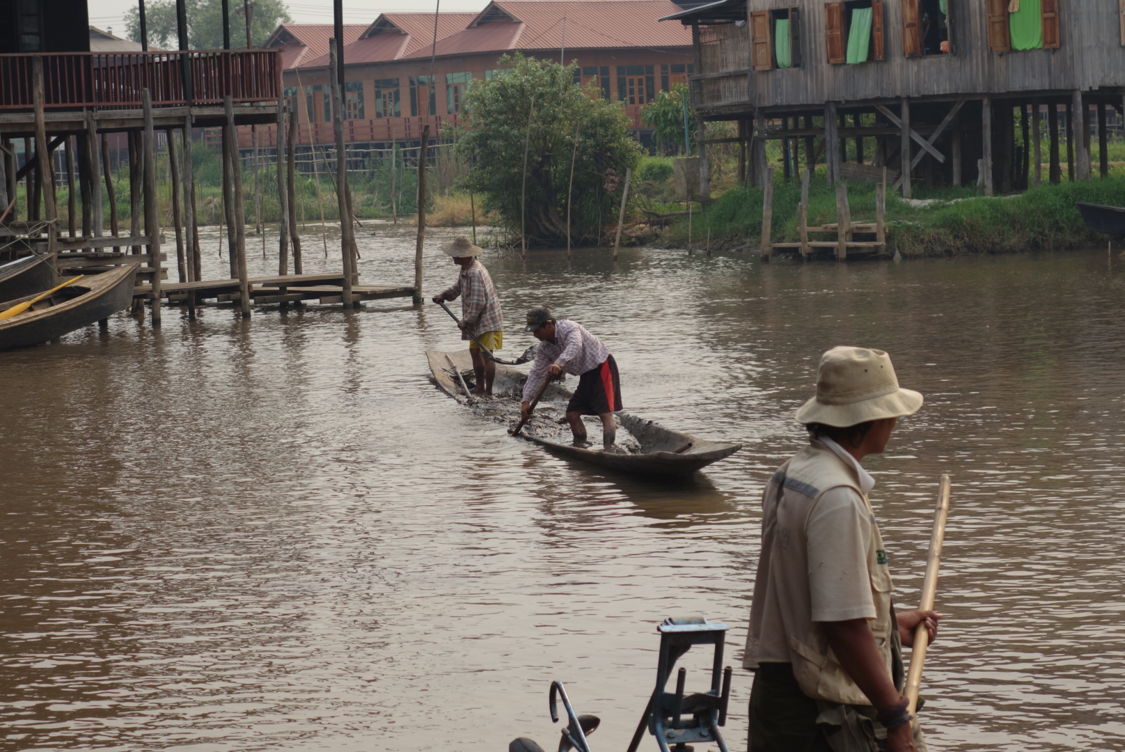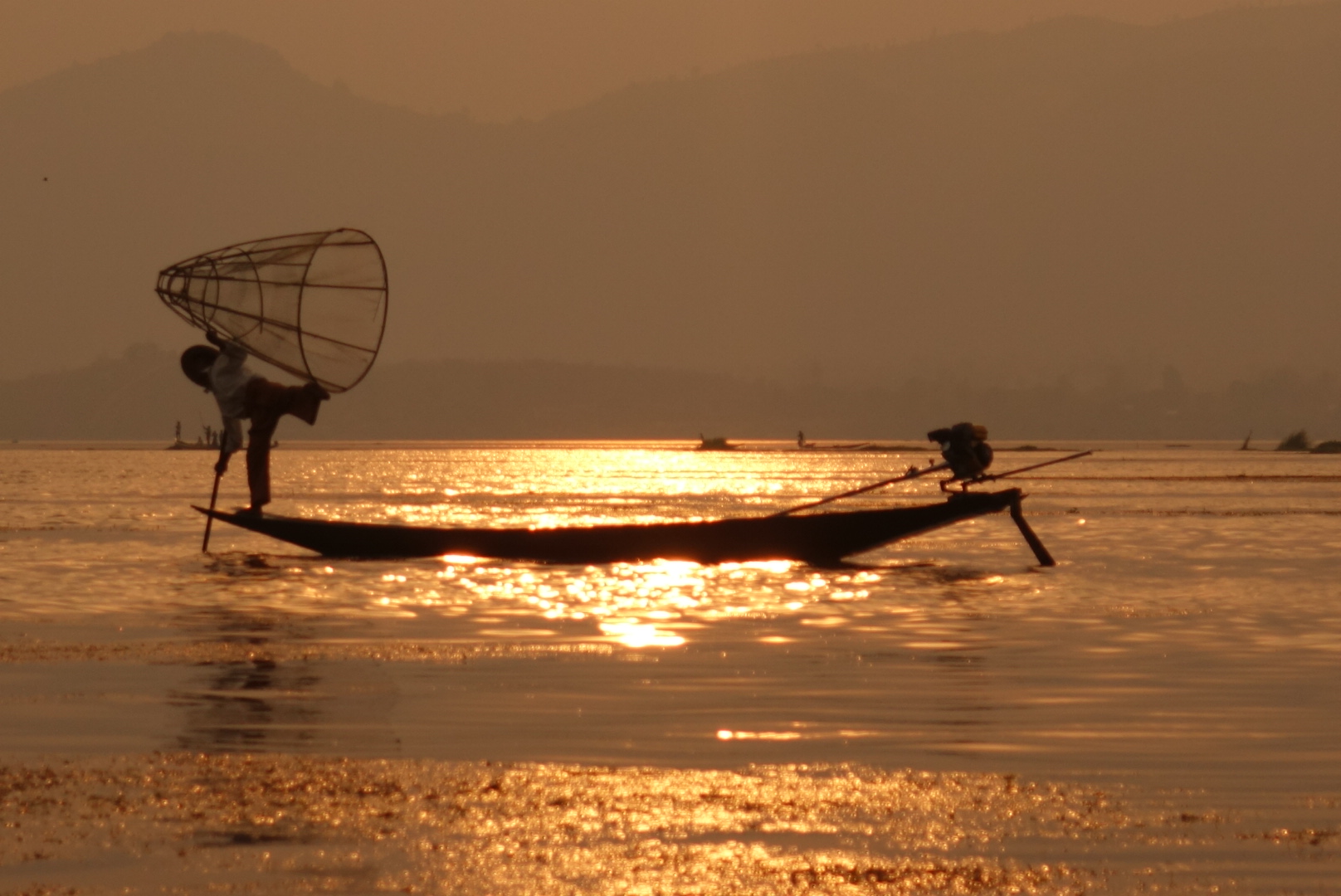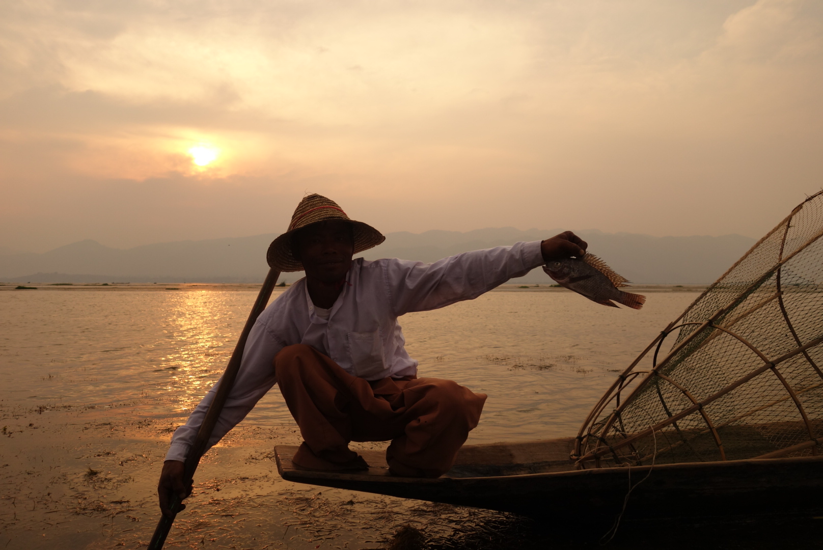 เช้าวันนี้เรามีนัดกับอินเลพี่คนขับจะมารับเราที่โรงแรม เรารีบอาบน้ำเก็บข้าวของ(กระเป๋า) เพราะเราจะย้ายห้องพักใหม่ และรีบเอากระเป๋าไปฝากไว้ที่เคาเตอร์ อย่าลืมทานอาหารเช้า ต้องใช้สิทธิ์ให้ครบเพราะค่าห้องค่อนข้างแพง เราทานอาหารเช้าเสร็จแล้ว ถึงเวลาแล้วแต่ยังไม่เห็นมีใครมารับเลย พอเดินออกไปข้างนอกเห็นพี่คนขับเรือมายืนรอที่หน้าโรงแรม อ่าว!แล้วไมไม่มีเจ้าหน้าที่คนไหนบอกเราเลยว่าพี่เค้ามารอ พี่เค้าขับมอเตอร์ไซต์มาคนเดียว ในใจคิดว่าคงอัดกันไป แต่ที่ไหนได้พี่เค้าพาเดิน โดยจูงรถมอเตอร์ไซต์นำหน้าเราไป เราก็รู้สึกผิดหวังนิดหน่อยไหนบอกว่ามารับไง (จริงๆเค้าก็มารับนะ55) จริงๆขับรถไปส่งที่ละคนก็ได้ แต่ไม่เป็นไรเดินก็เดินถือว่าออกกำลังกายยามเช้า อีกอย่างตลอดทริปที่ผ่านมาก็มีแต่เดินอยู่แล้ว (แอบผิดหวังนิดหนึ่งกับการบริการในครั้งแรก) เราเดินไปที่ท่าเรือที่มีเรือรับจ้างจอดรอบริการนักท่องเที่ยวอยู่เต็ม พี่เค้าก็จัดที่จัดทางให้เรานั่ง จะเป็นเก้าอี้ไม้ที่ตอกติดกับเรือ มีเบาะนุ่มๆให้นั่ง(ไม่ใช่เบาะเป็นหมอนรองนั่ง) มีผ้าห่มสำรองให้เราเผื่อไว้คลุมเวลาน้ำกระเด็นใส่ เรานั่งแบบไม่สนใจอะไรทั้งนั้น ทำตัวเป็นนักท่องเที่ยวที่ดี นั่งเงียบ เค้าพาไปไหนก็ไป ไม่เรื่องมากปล่อยให้พี่เค้าทำงานของเค้าได้เต็มที่ คือขับเรืออย่างเดียว ตั้งแต่เริ่มออกเรือแรกๆจะผ่านแม่น้ำแคบๆแล้ววิ่งออกสู่แม่น้ำกว้างขึ้นเรื่อยๆ จนทะลุที่ทะเลน้ำจืดอันกว้างใหญ่ มองไปทางไหนก็เห็นแสงหมอกยามเช้ากับท้องฟ้าอันสดใส นกเป็ดน้ำลอยคอหาปลาอยู่เป็นกลุ่มๆ บ้างก็บินว่อนอย่างมีความสุข ออกไปเริ่มไกลหน่อยก็จะเริ่มเห็นชาวประมงที่ยืนอยู่บนเรือ เท้าเกี่ยวใบพายข้างหนึ่ง มือจับแห่รอจังหวะหว่านแห บ้างกำลังดึงแหขึ้นมาเพื่อดูผลงาน ระหว่างทางก็จะเห็นเรือรับจ้างพาชาวบ้านหรือนักท่องเที่ยวเข้าและออกภายในแม่น้ำ ระหว่างเส้นทางนี้มันคืออะไรที่แบบพูดไม่ออก ได้แต่นั่งทึ่งอยู่บนเรือ มองไปสุดลูกตาก็เป็นวิวภูเขา คือตอนนี้ลืมไปหมดแล้วว่ากำลังอยู่ในโหมดเซ็งอยู่ เหมือนเรากำลังนั่งดูหนัง3D อยู่ ที่ผู้สร้าง CG กราฟฟิก ได้สมบูรณ์แบบมากๆ เหมือนจริง100% ในใจตอนนี้มันว่างเปล่า กำลังลองลอยอยู่ในภวังค์ความฝัน ยิ่งมองยิ่งฟิน รู้สึกว่าไม่เสียแรงที่ข้ามร้อน ข้ามเขา มายังที่นี่ พ้นจากทะเลสาบแล้ว เรือเริ่มวิ่งเข้าสู่หมู่บ้าน ซึ่งคนที่นี่เก่ง คนที่นี้เป็นชาวอินคา เชื้อชาติมอญ สังเกตุได้จากสัญลักษณ์หงส์ที่ตั้งไว้กลางแม่น้ำก่อนเข้าสู่หมู่บ