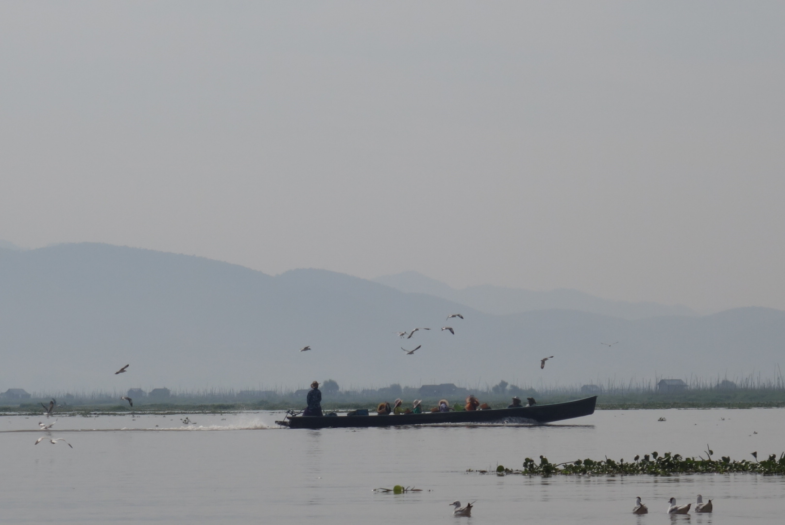 Über den Fluß erreichen wir nach etwa 10 Minuten den Inle Lake und der Anblick der ich uns bietet ist nicht von schlechten Eltern.