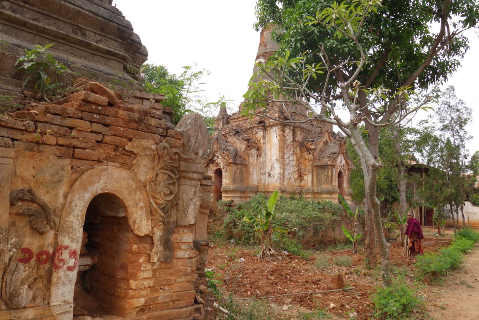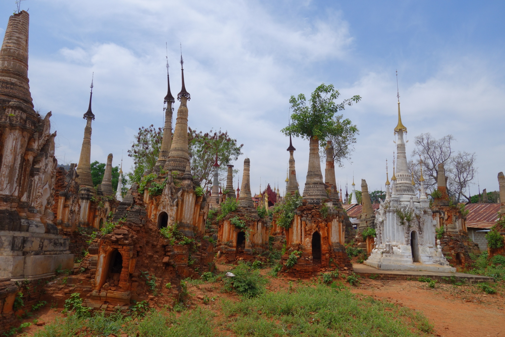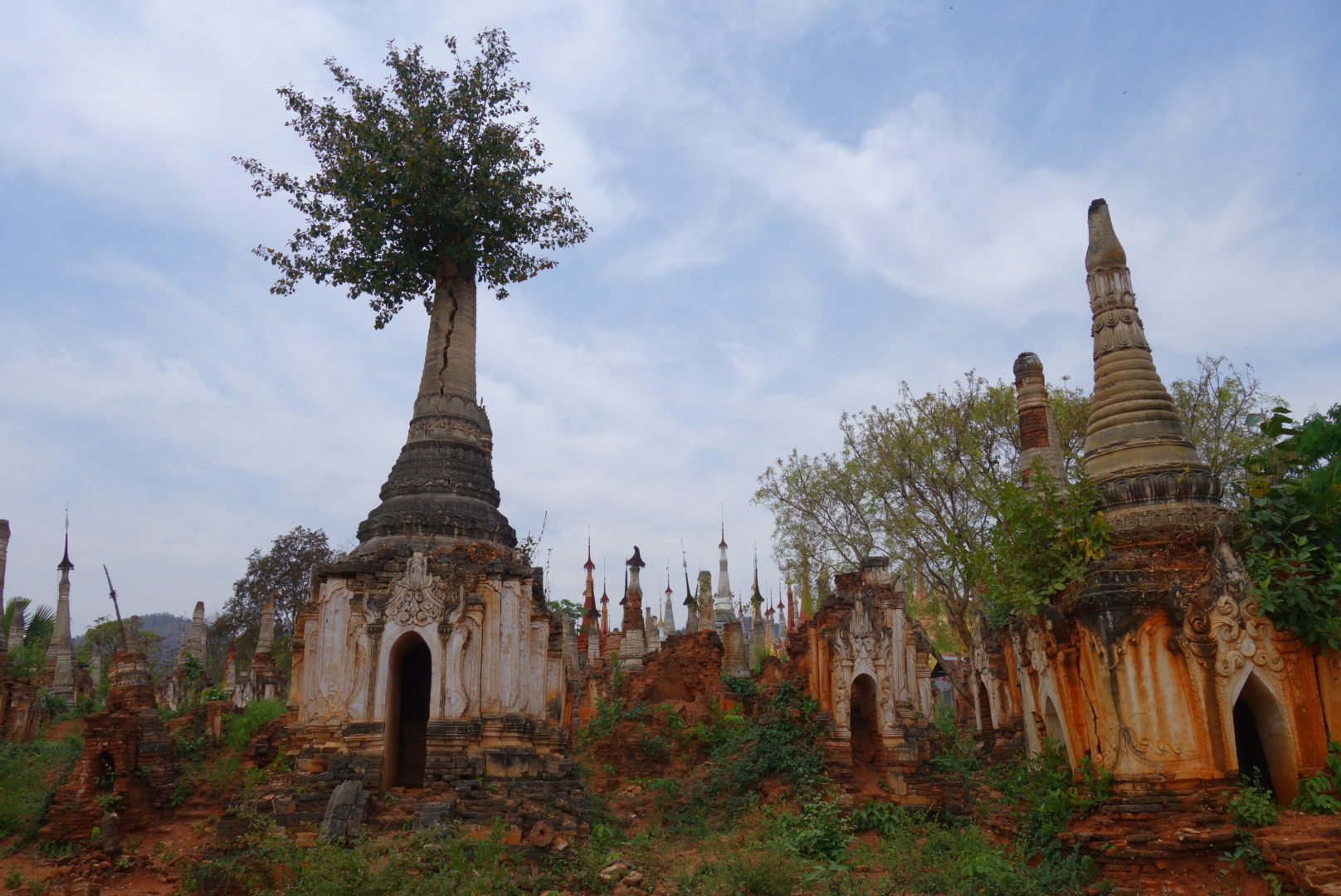 Keine 2 Minuten später stehen wir in mitten von ich schätze mal 20 zum Teil schon stark verwitterten Stupas.