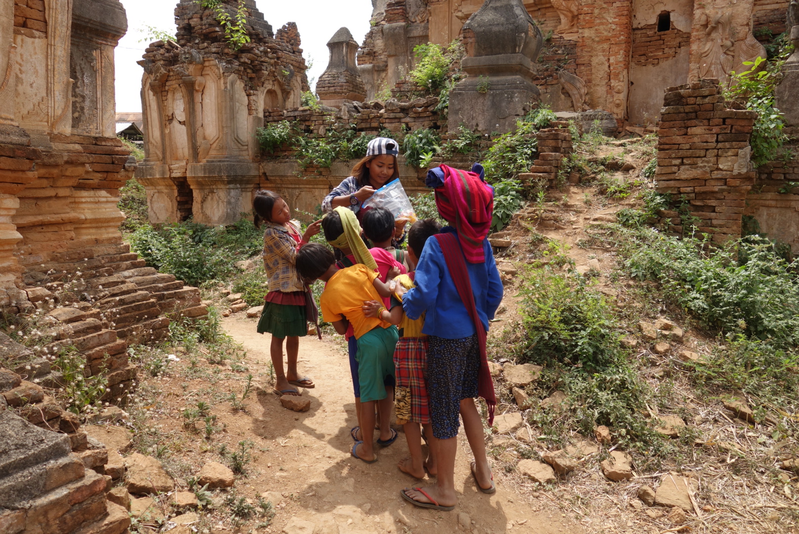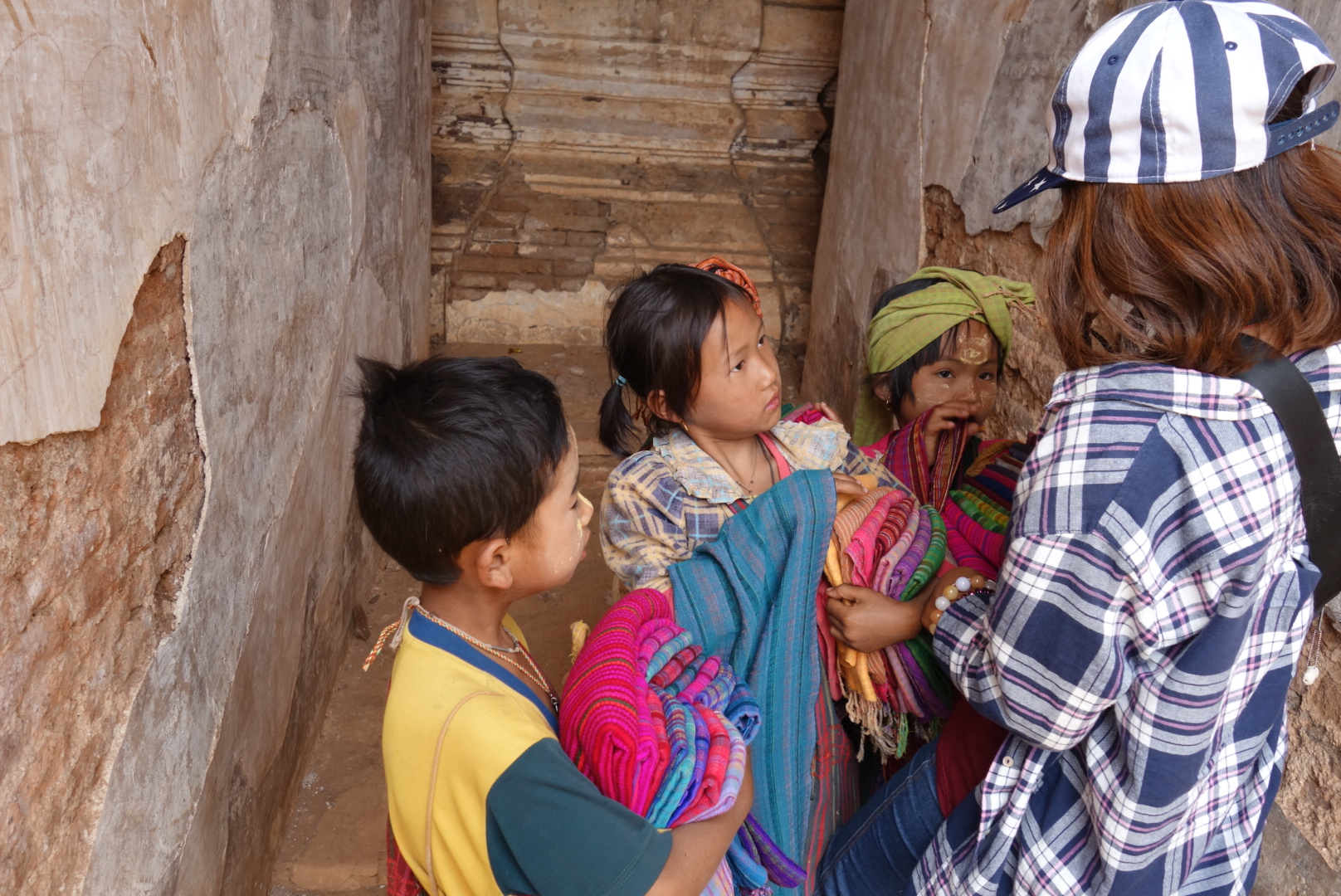 Ich geh also mal schauen wo meine Begleitung steckt und finde sie umringt von Kindern,  die ihr alle irgendwelche Stoffe verkaufen möchten.