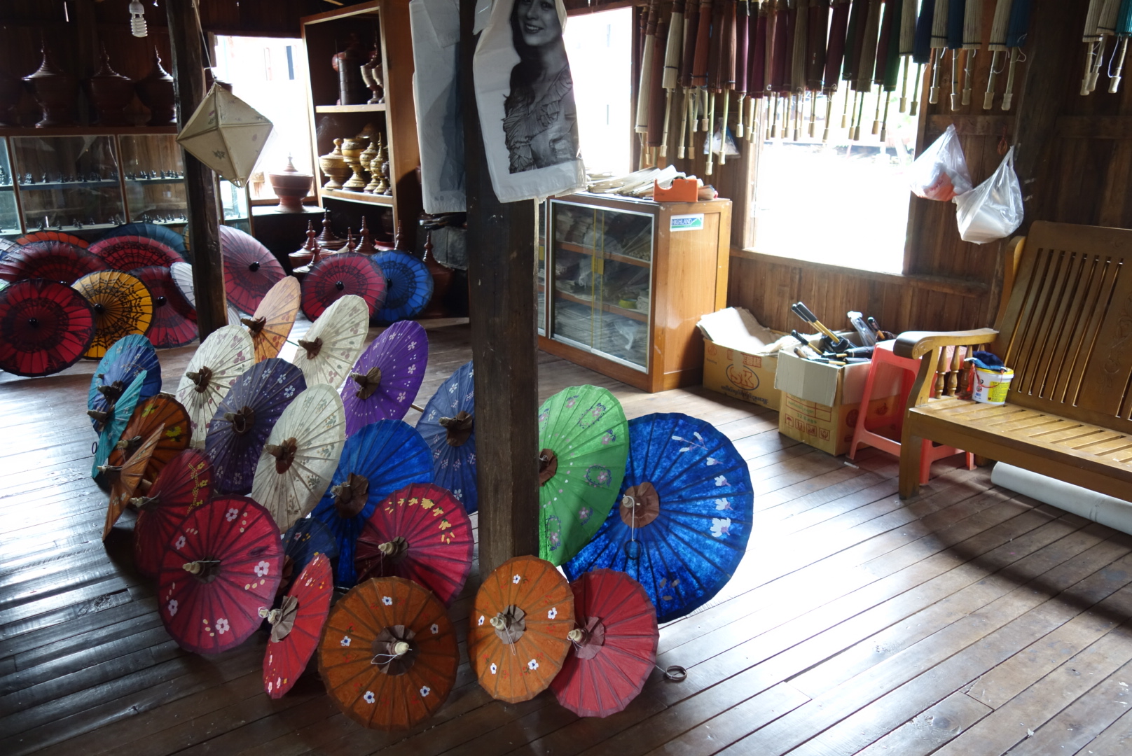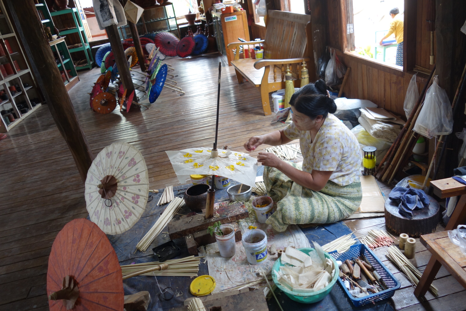 Einem kleine Betrieb in dem traditionelle Regenschirme hergestellt werden.