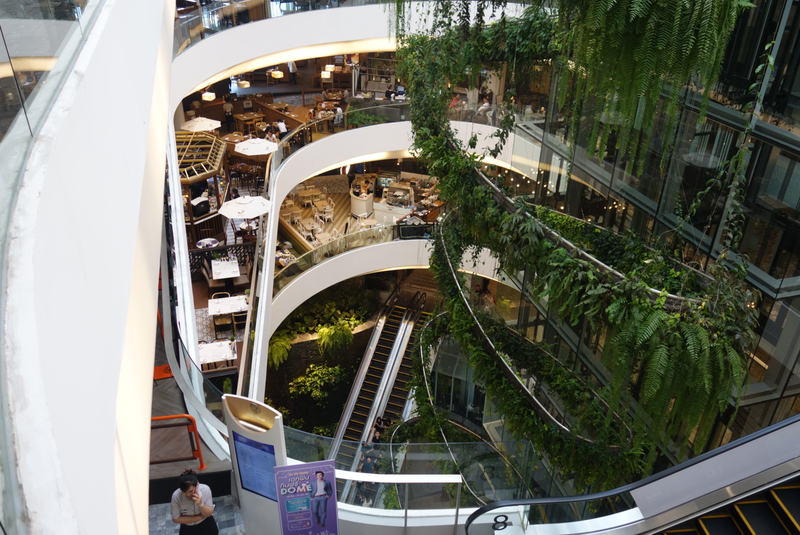 Außerdem kann man hier gut essen, weil sich weiter oben im Gebäude der sogenannte „Helix Quarter“ in dem ein Restaurant neben dem dem anderen ist bis weit nach oben schlängelt.