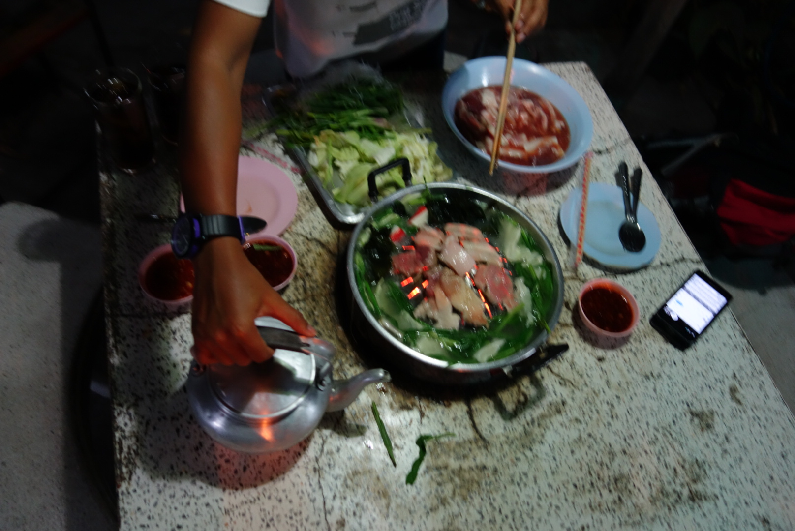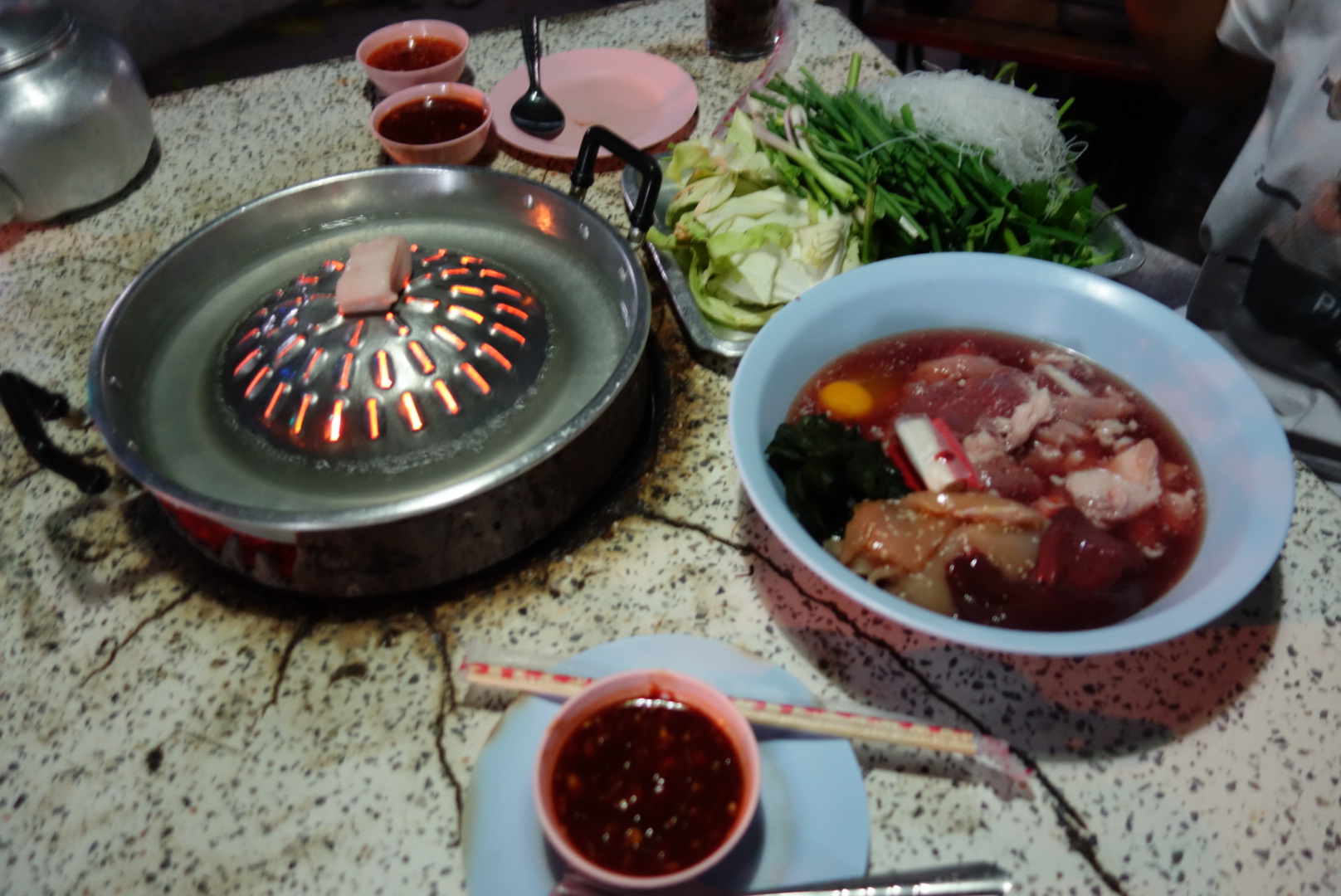 Wir gehen mal wieder essen und weil es in Laos ja schon einmal so ein tolles Erlebnis war, entscheiden wir uns für ein Tom Yang.