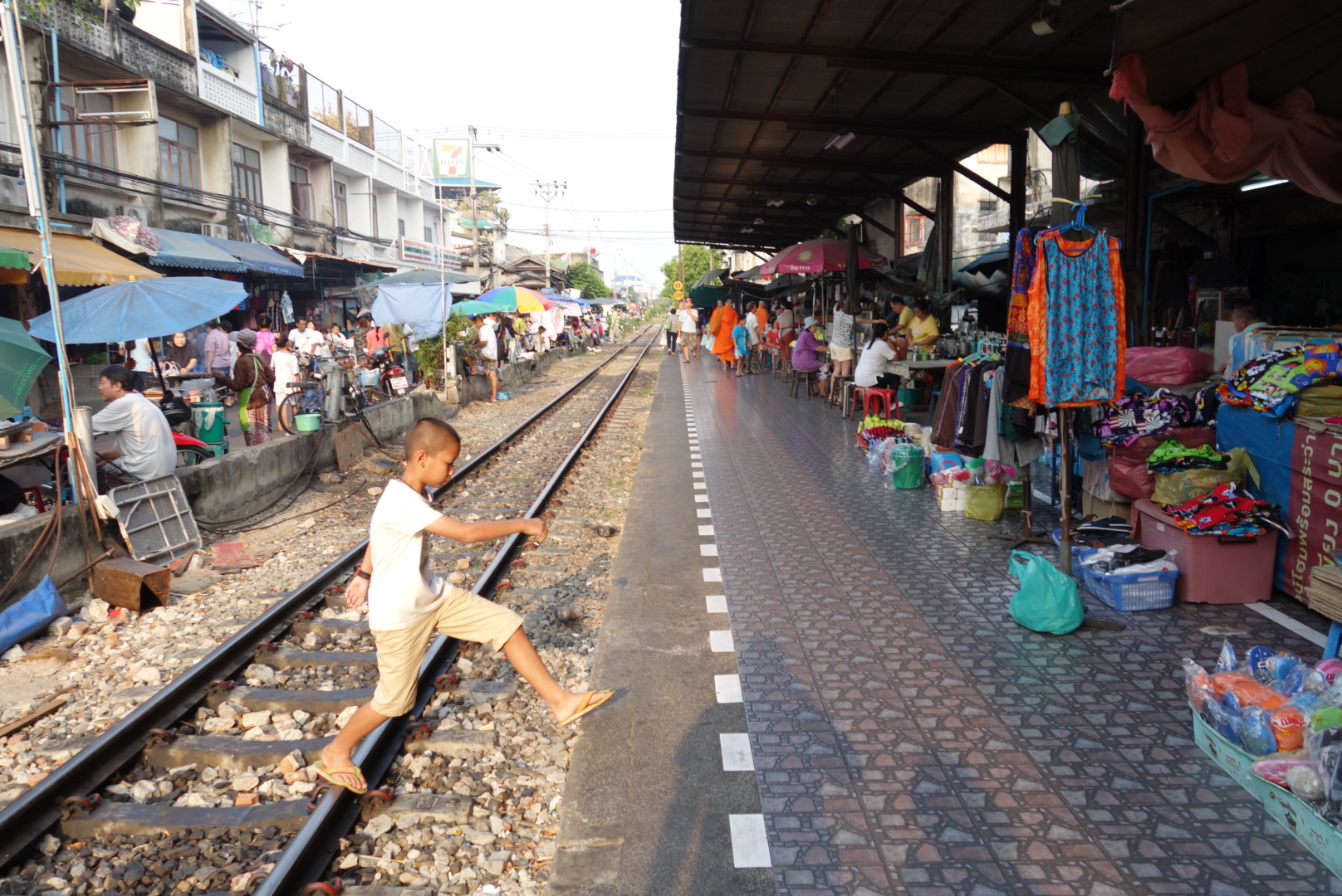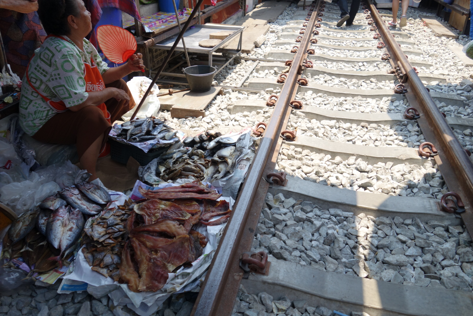 Wie beim letzten mal schlendern wir über die Gleise und schauen uns auf dem Markt etwas um.