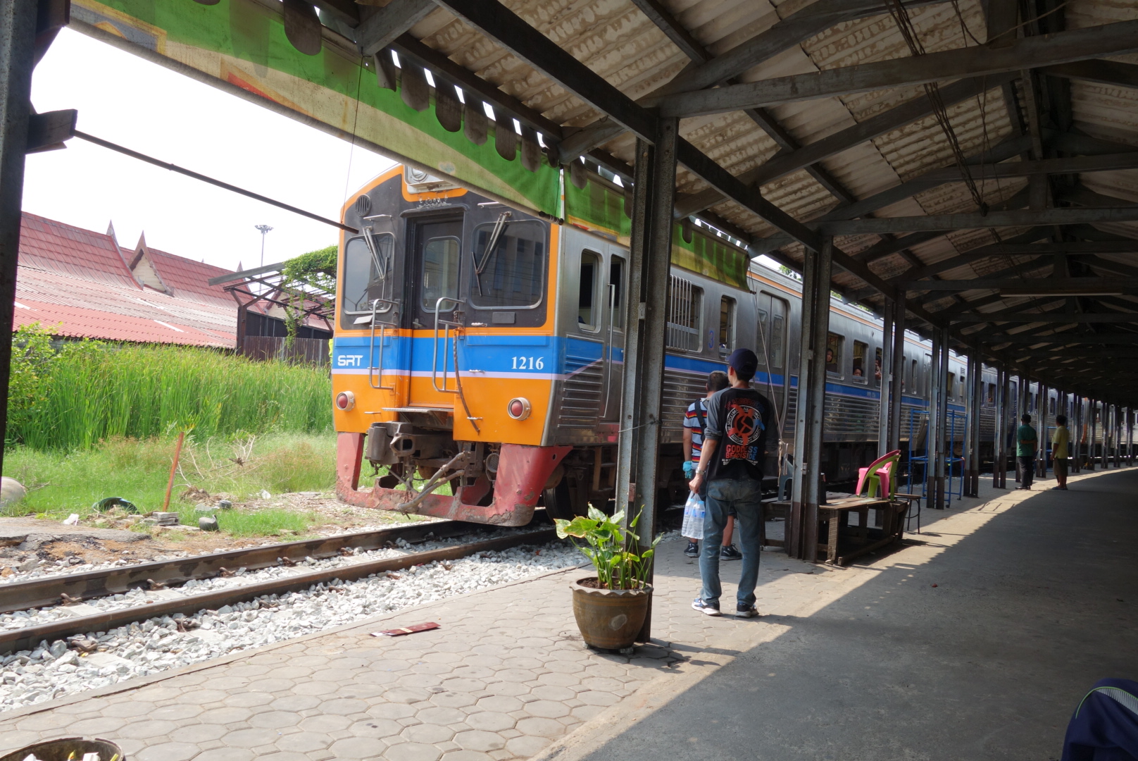 Die Fahrkarte kostet hier auch noch mal 10 Bath und wir haben eine Stunde bis die Bahn kommt.