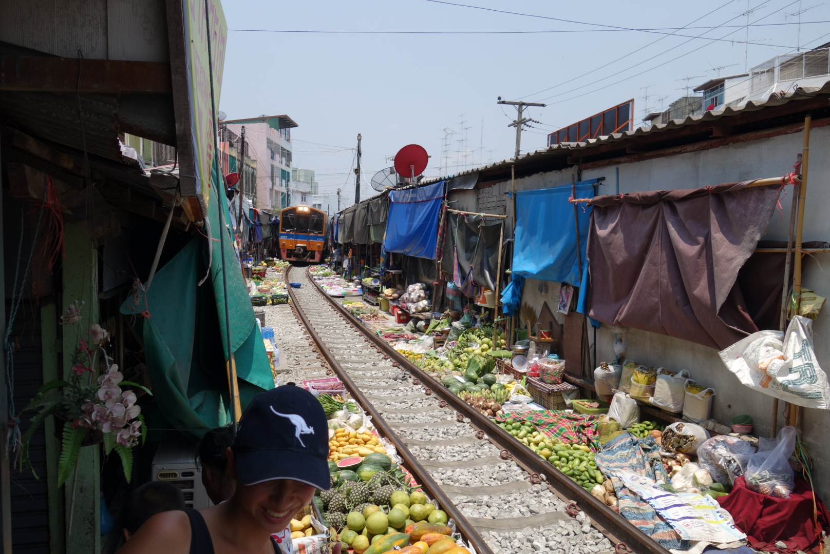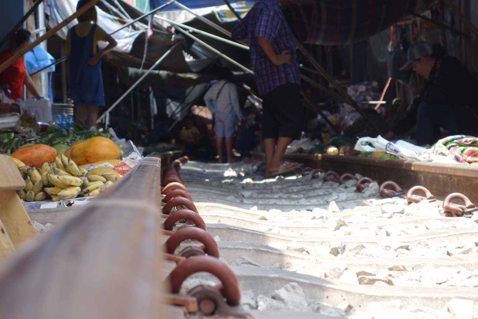 Nach etwa 30 Minuten ist es soweit, die Händler klappen hastig die Markisen ein und alle warten gespannt auf den Zug.