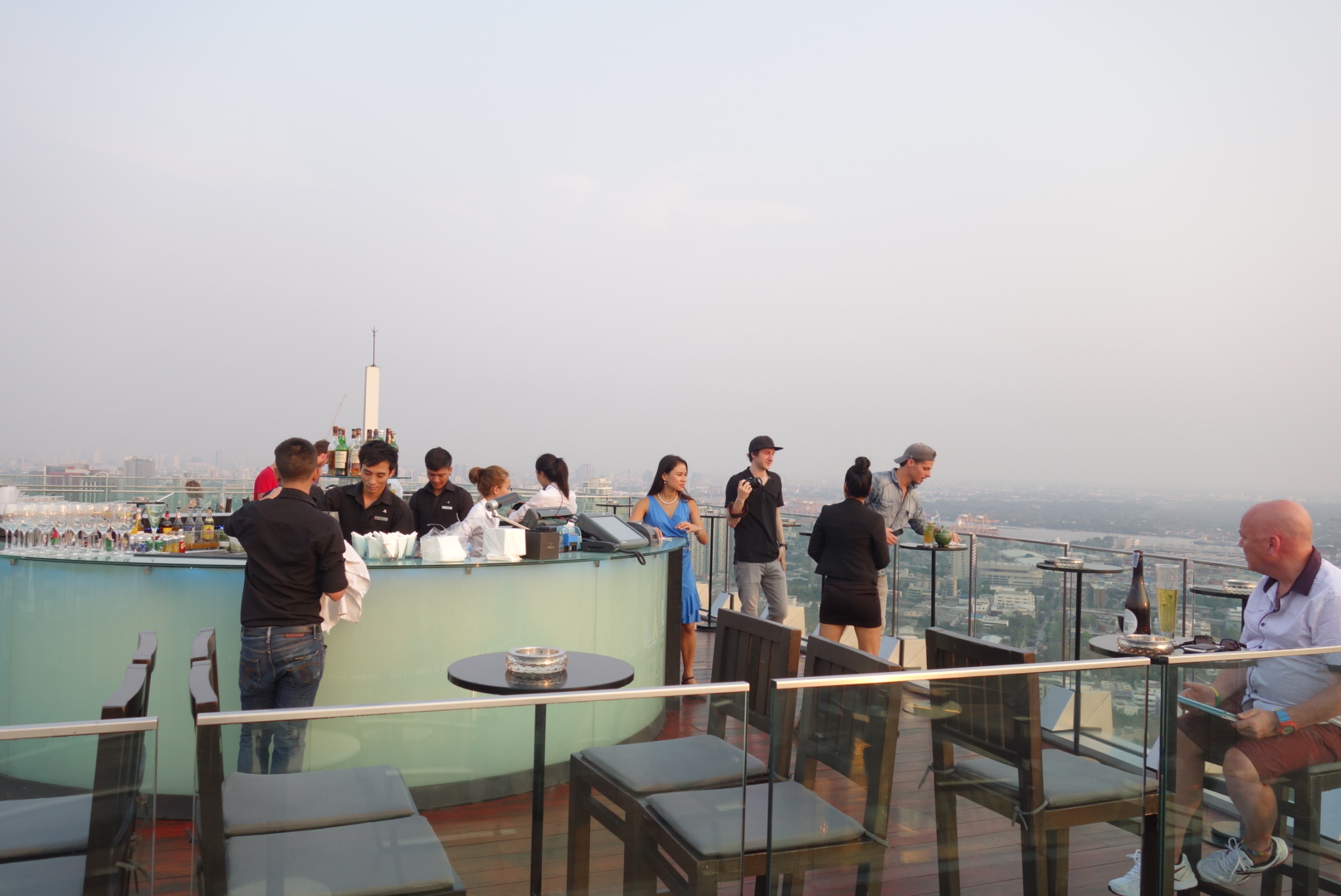 Die „Octave Rooftop Bar“ im 49. Stock des Marriott Hotels hier in Bangkok scheint auf jeden Fall eine gute Wahl zu sein.