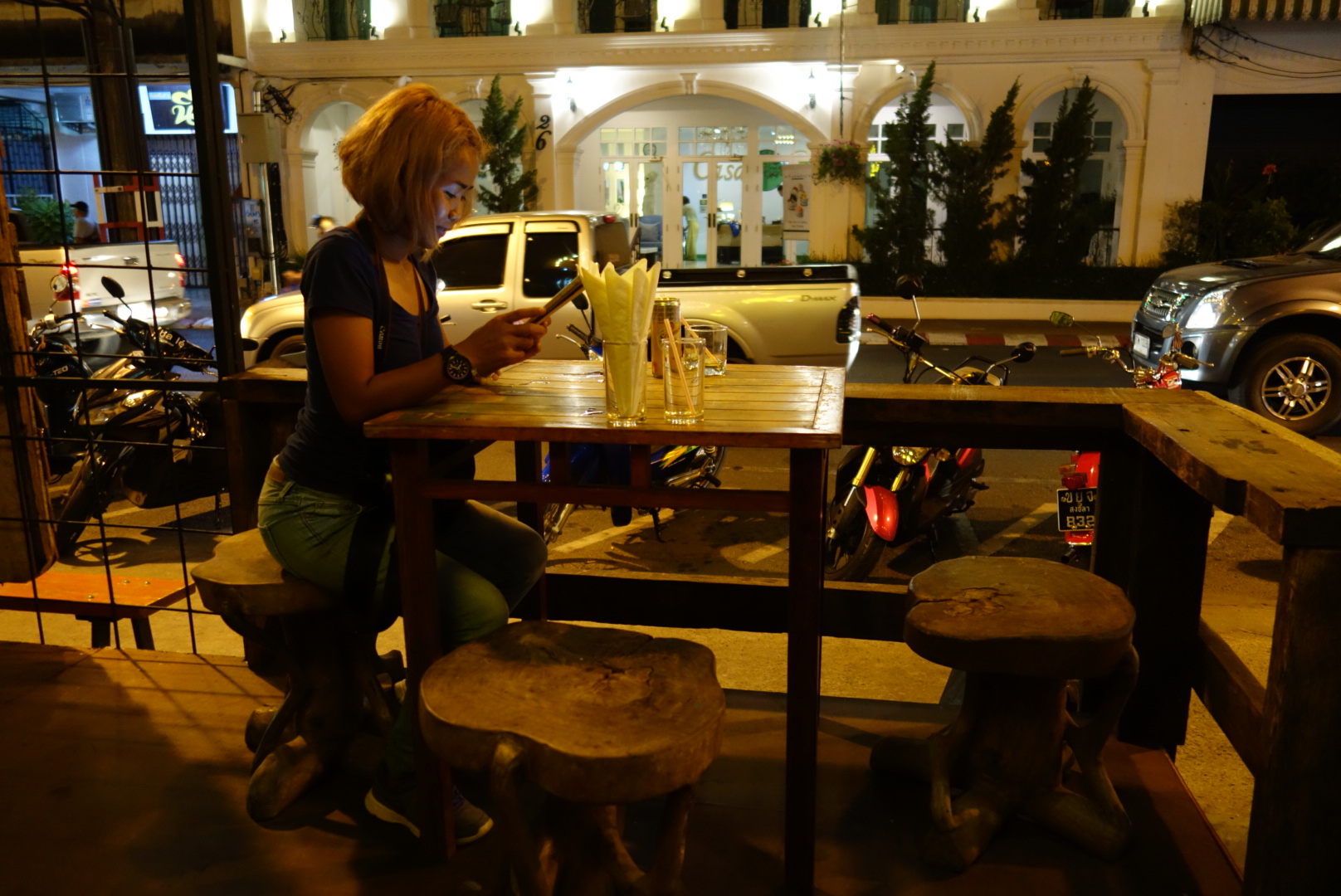 Also schreibe ich Bonny, das wir uns um 5 Uhr an der Station „Thong Lo“ treffen, weil ich mir vor dem morgigen Zahnarztbesuch Mut anzutrinken.