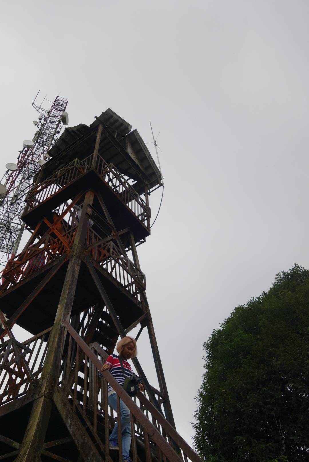 Auf dem Berg gibt es dann einen rostigen Aussichtsturm und natürlich können wir nicht anders als da rauf zu klettern.