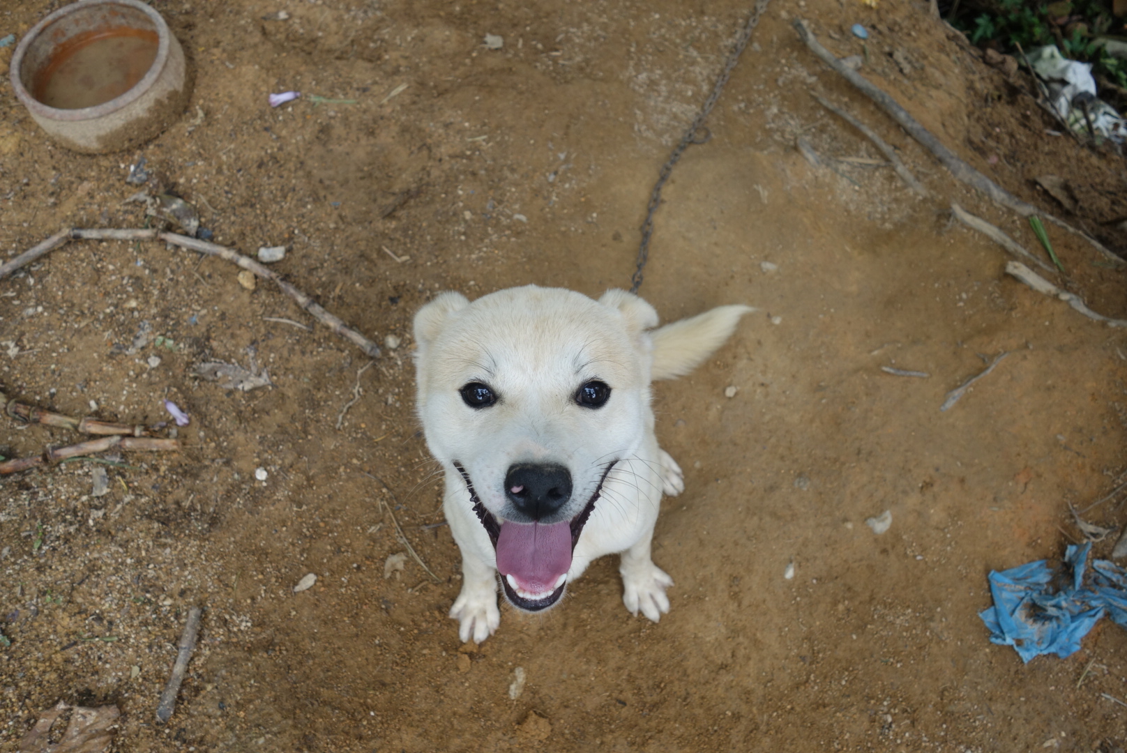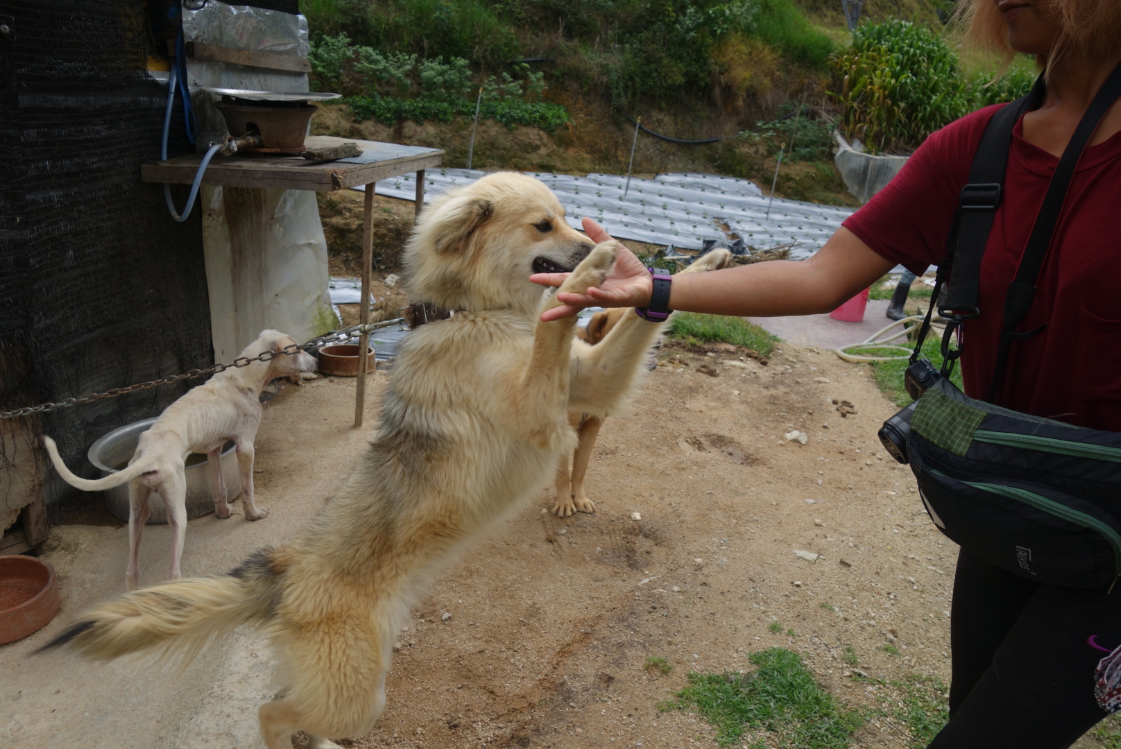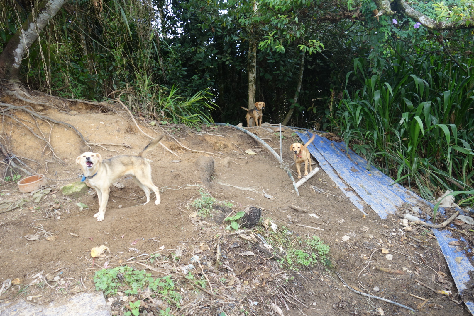 Wobei wir bevor wir überhaupt zur Straße gehen können von 2 angeketteten Hunden freudig begrüßt werden.