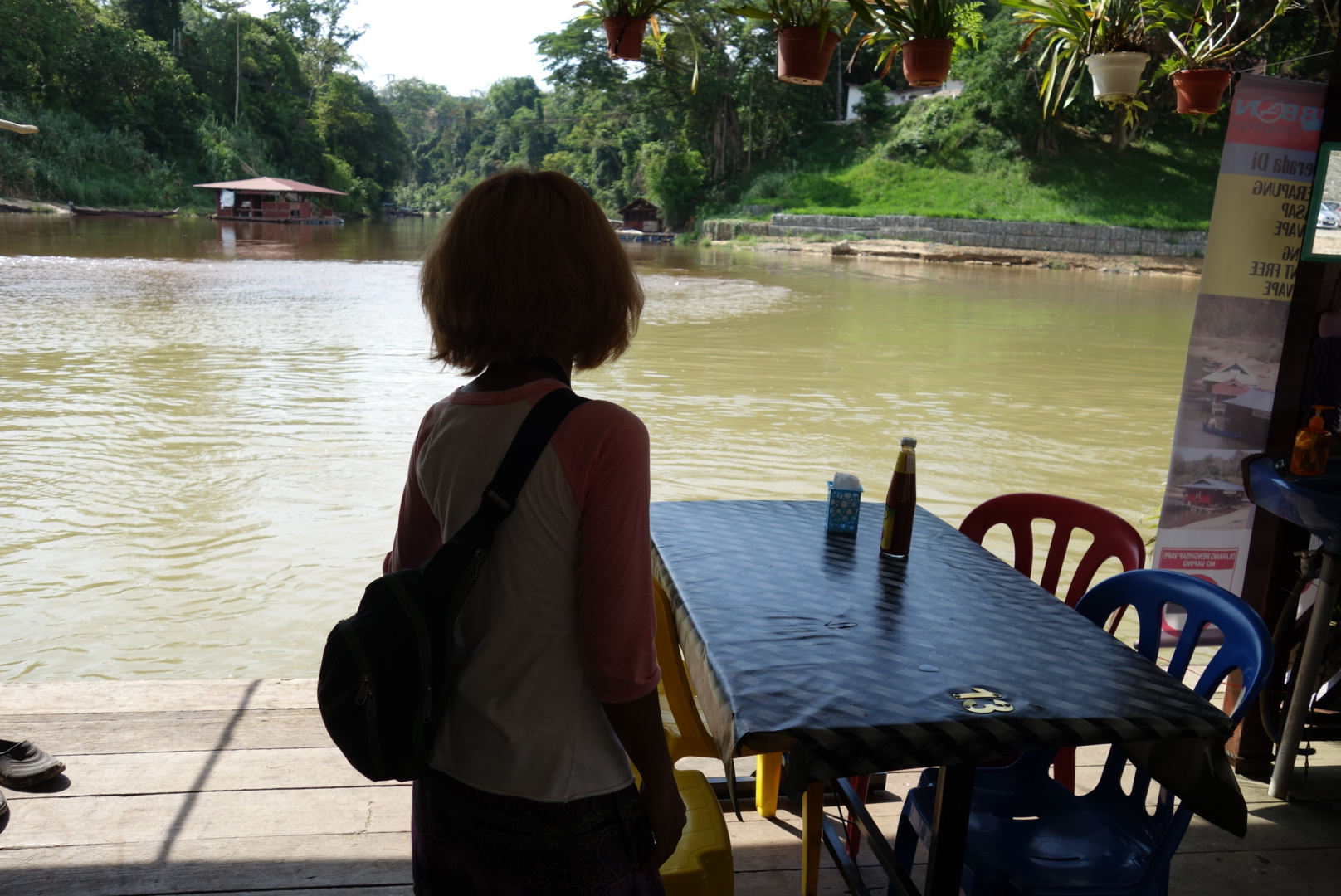 Wir laufen also langsam wieder zum Bootsanleger, um von dort wieder ans andere Fluß Ufer zu schippern um Geld abzuheben.