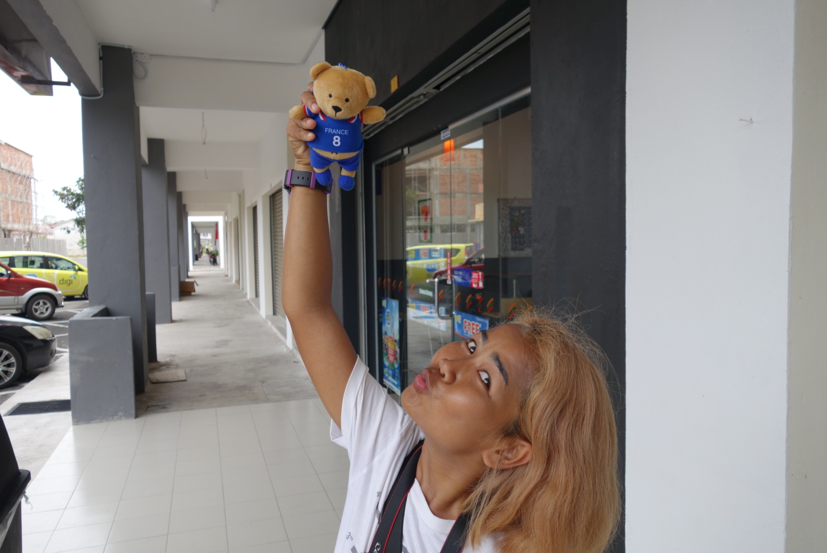 Passt auch ganz gut, weil wir uns hier im Seven-Eleven auch noch mit Essens Vorräten eindecken wollen.