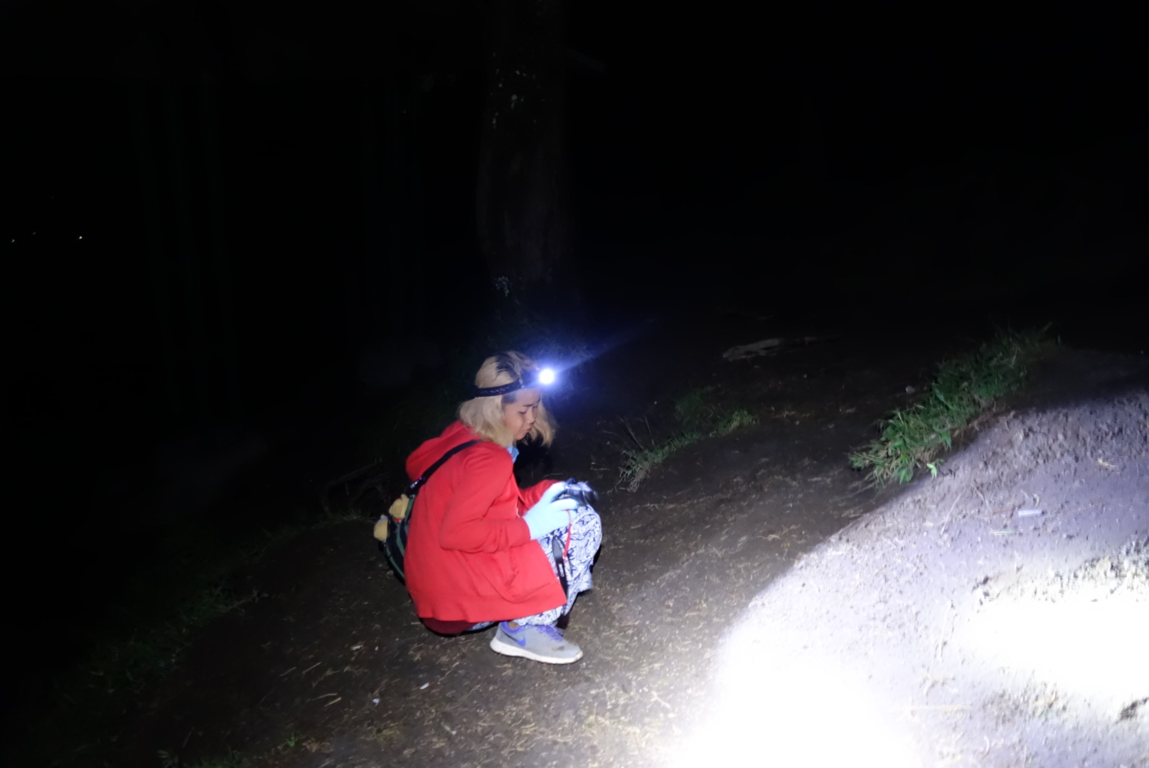 Auf einem schmalen Pfad geht es im Licht unserer Stirnlampen immer weiter nach oben.