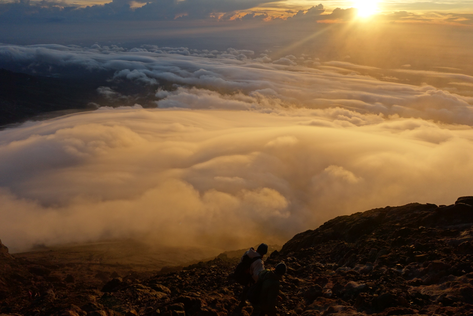 2930 Meter einer der gefährlichsten Vulkane der Welt, wir sitzen oben am Krater, sind glücklich, stolz und beobachten wie ein neuer Tag beginnt.