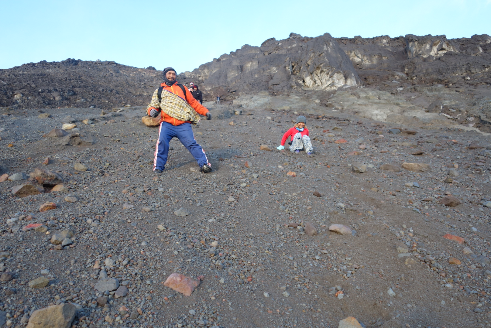 Anfangs muss man dabei auch vorsichtig seien und schauen wo man hinter tritt aber als wir das lose Geröll erreichen zeigt und unser Guide, das es auch anders geht.