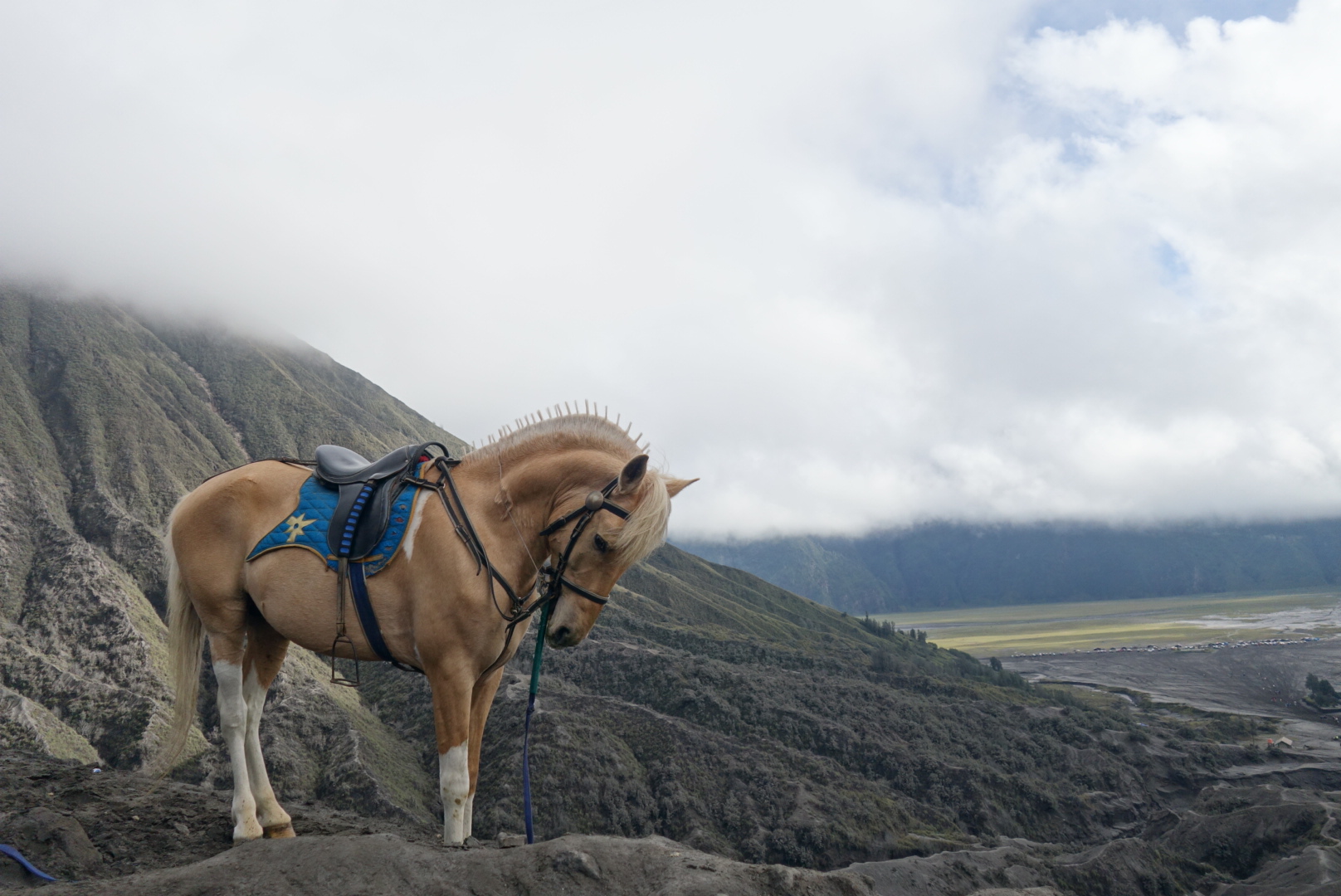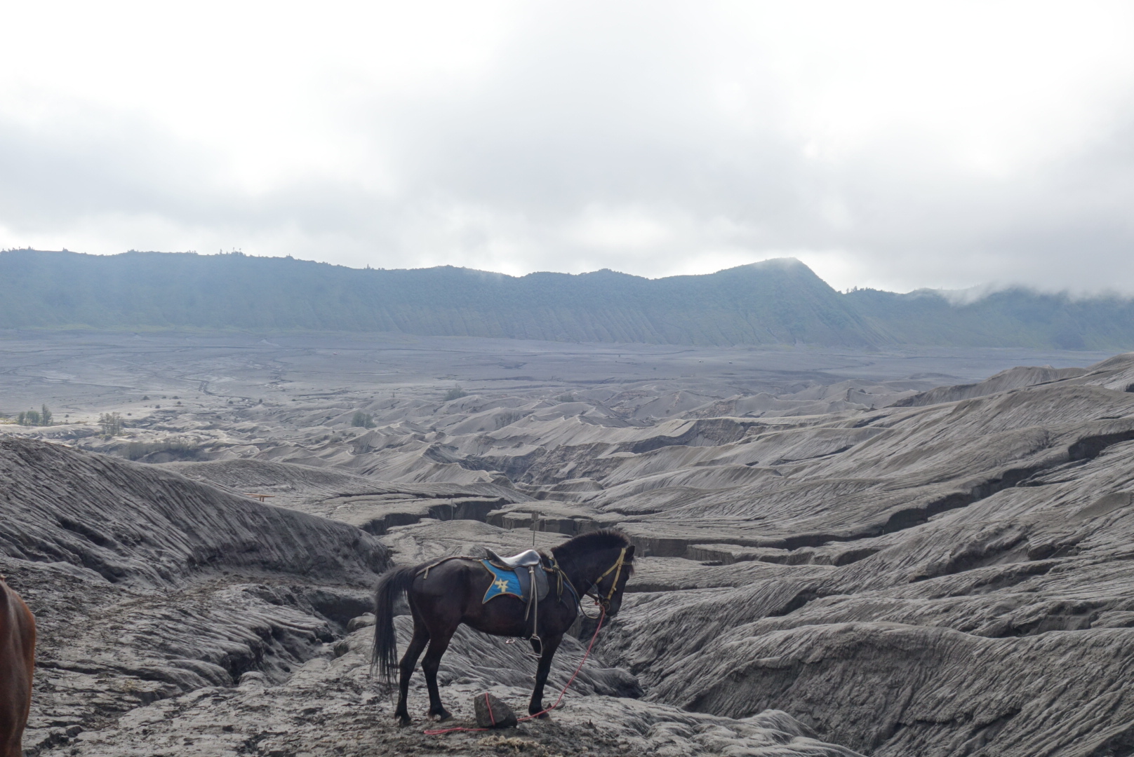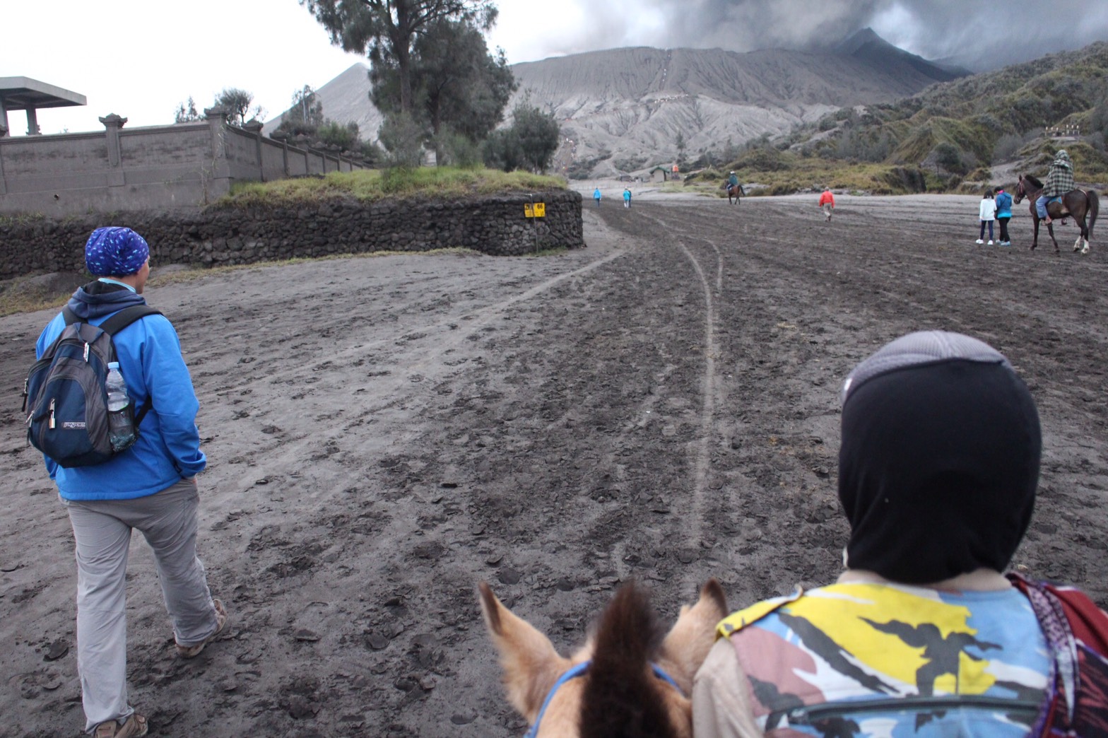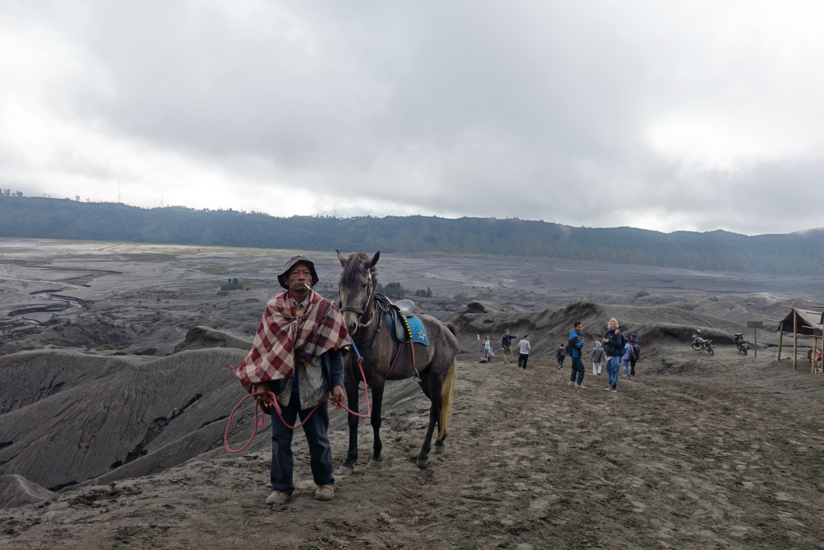 Wobei es auch die Möglichkeit gibt hoch zu Ross zum Bromo zu gelangen, weil überall Einheimische mit Pferden sind, die einen anbieten auf den Berg tu reiten.