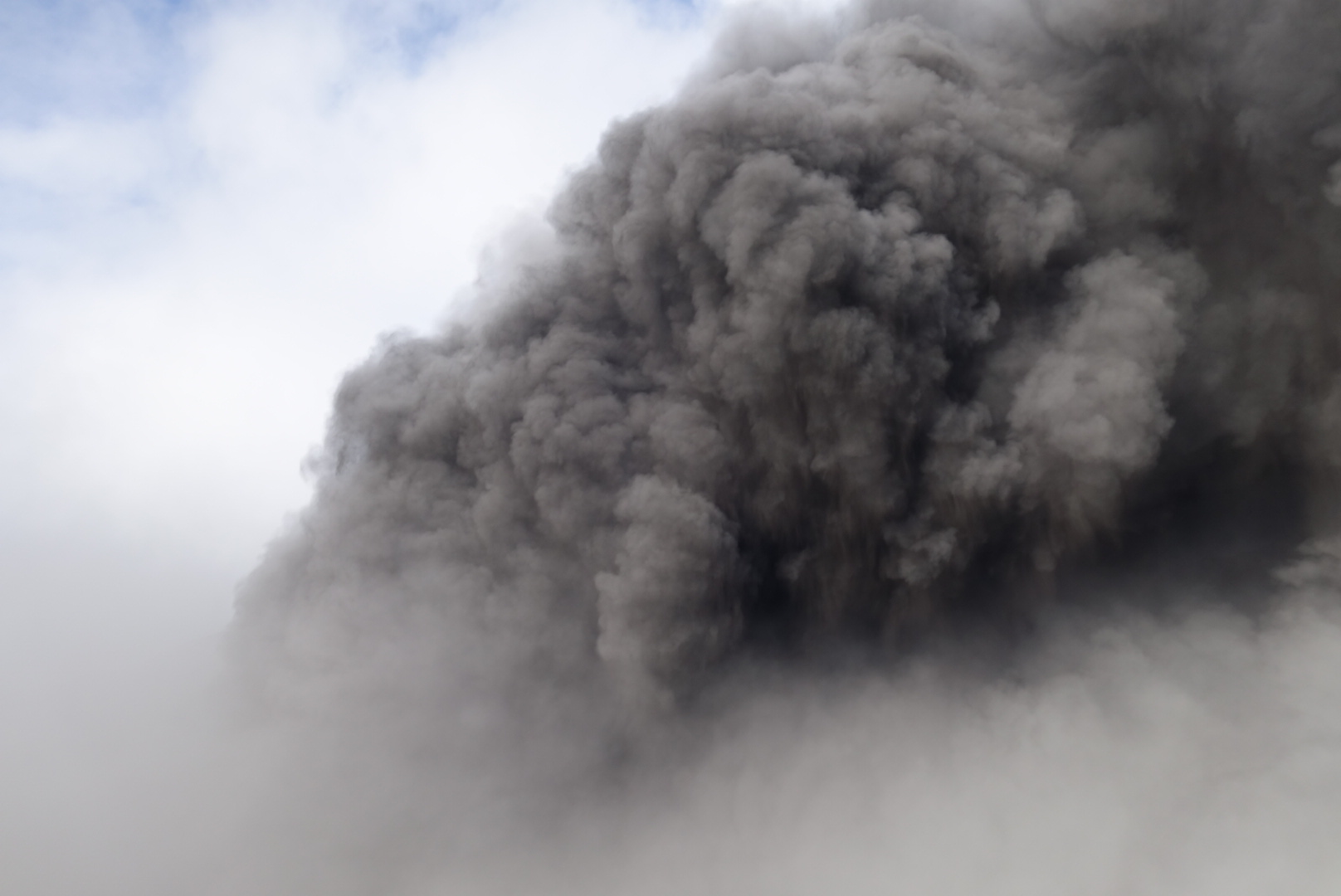Jedes mal wenn der Krach aus dem dunklen Schlund zu hören ist, wird dieser von einer riesigen Rußwolke begleitet.