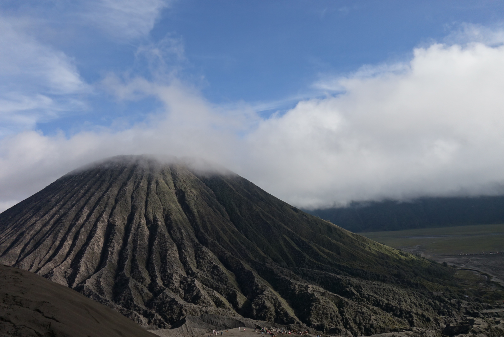 Im Gegensatz zum ständig wild rauchenden Bromo steigt aus dem Krater dieses Vulkans nur alle paar Minuten ein Rauchwöllkchen auf.