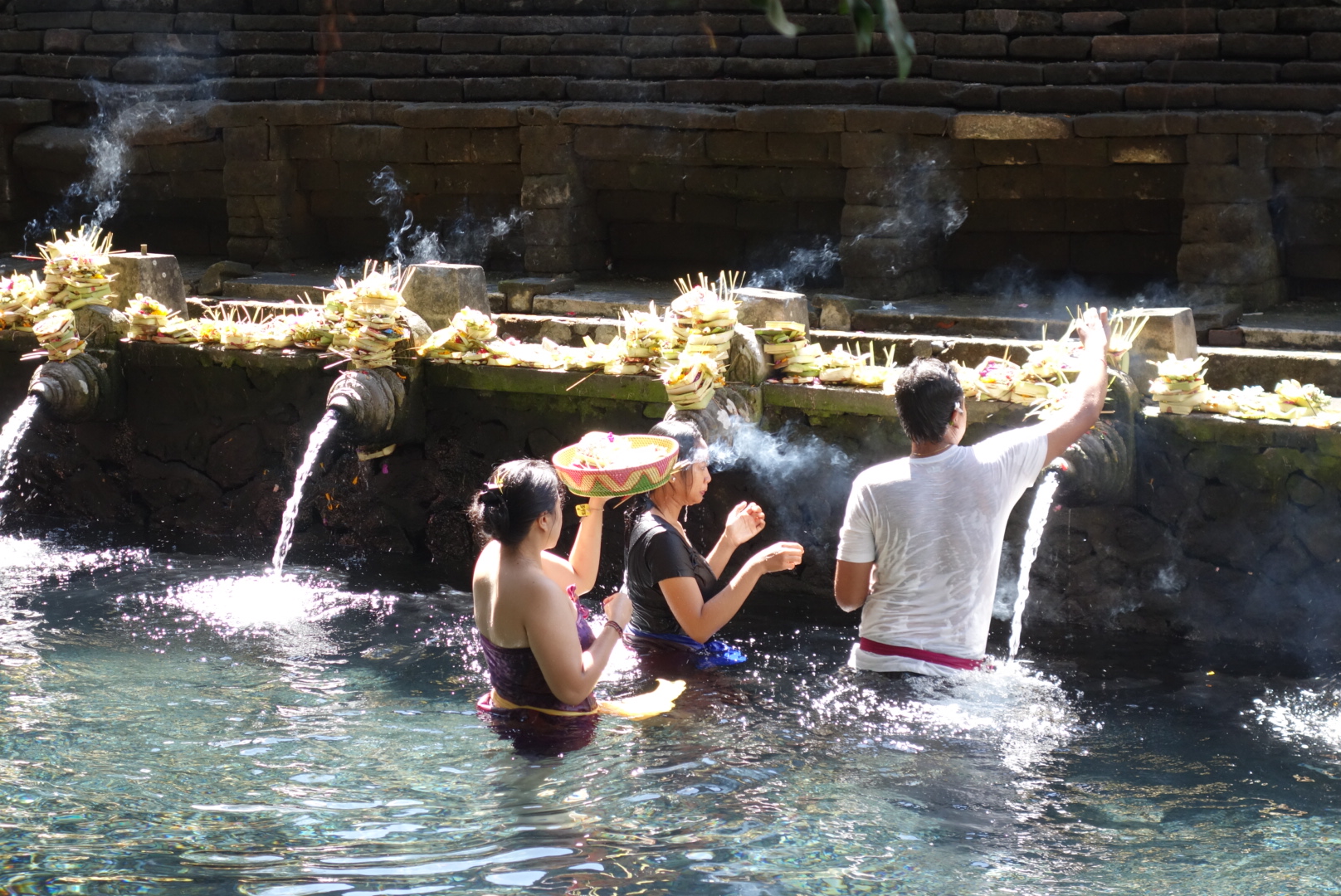 Schon seit über 1000 Jahren kommen Balinesen hier her um in dem heiligen Wasser zu baden und zu beten.