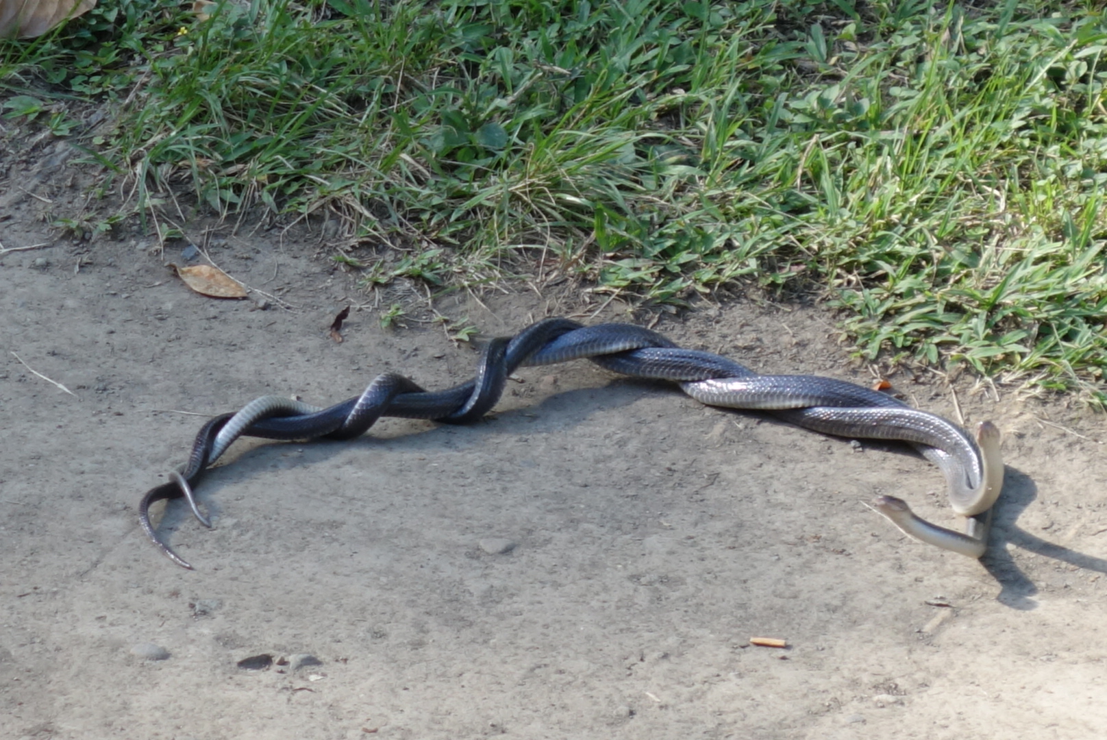 2 gar nicht mal so kleine Schlangen sind sich hier nämlich genau auf unserm Weg begegnet und weil sich die Beiden anscheinend auf Anhieb sympathisch sind lassen es die beiden hier gerade richtig krachen.