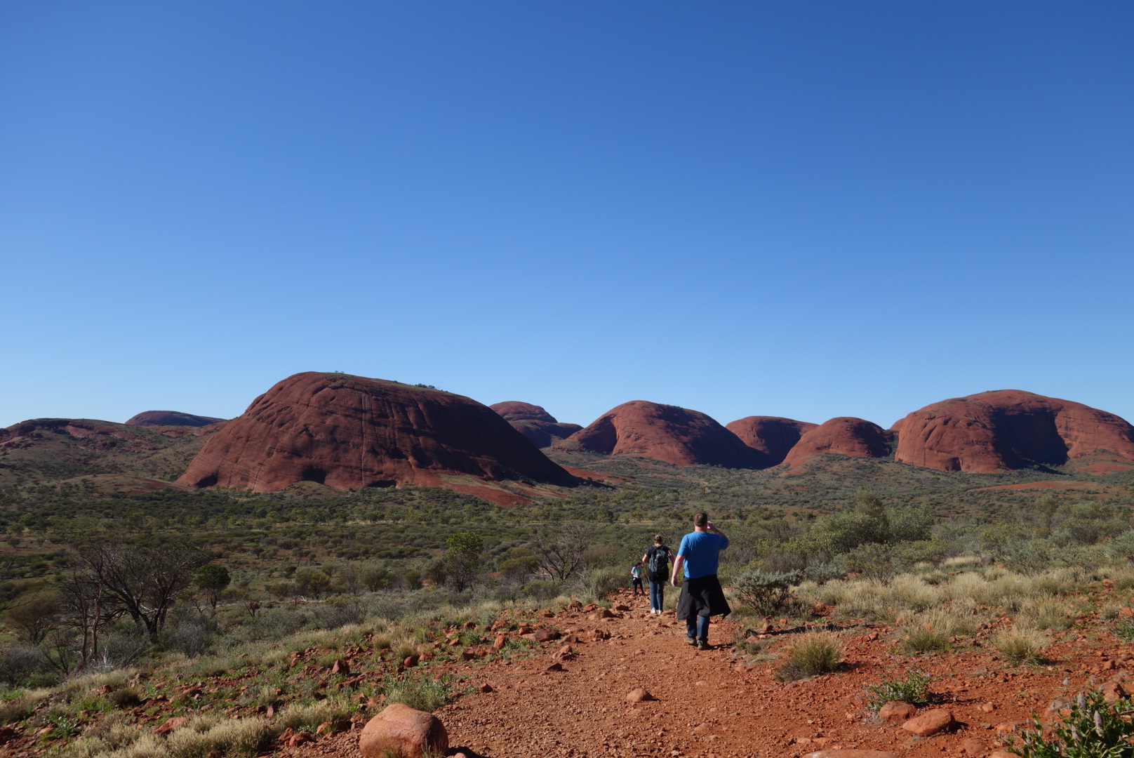 Schon aus der Ferne sind die Felsen recht beeindruckend und ich kann es fast ein wenig verstehen, das viele Leute behaupten Kata Tjuta hat sie mehr beeindruckt als der Uluru.