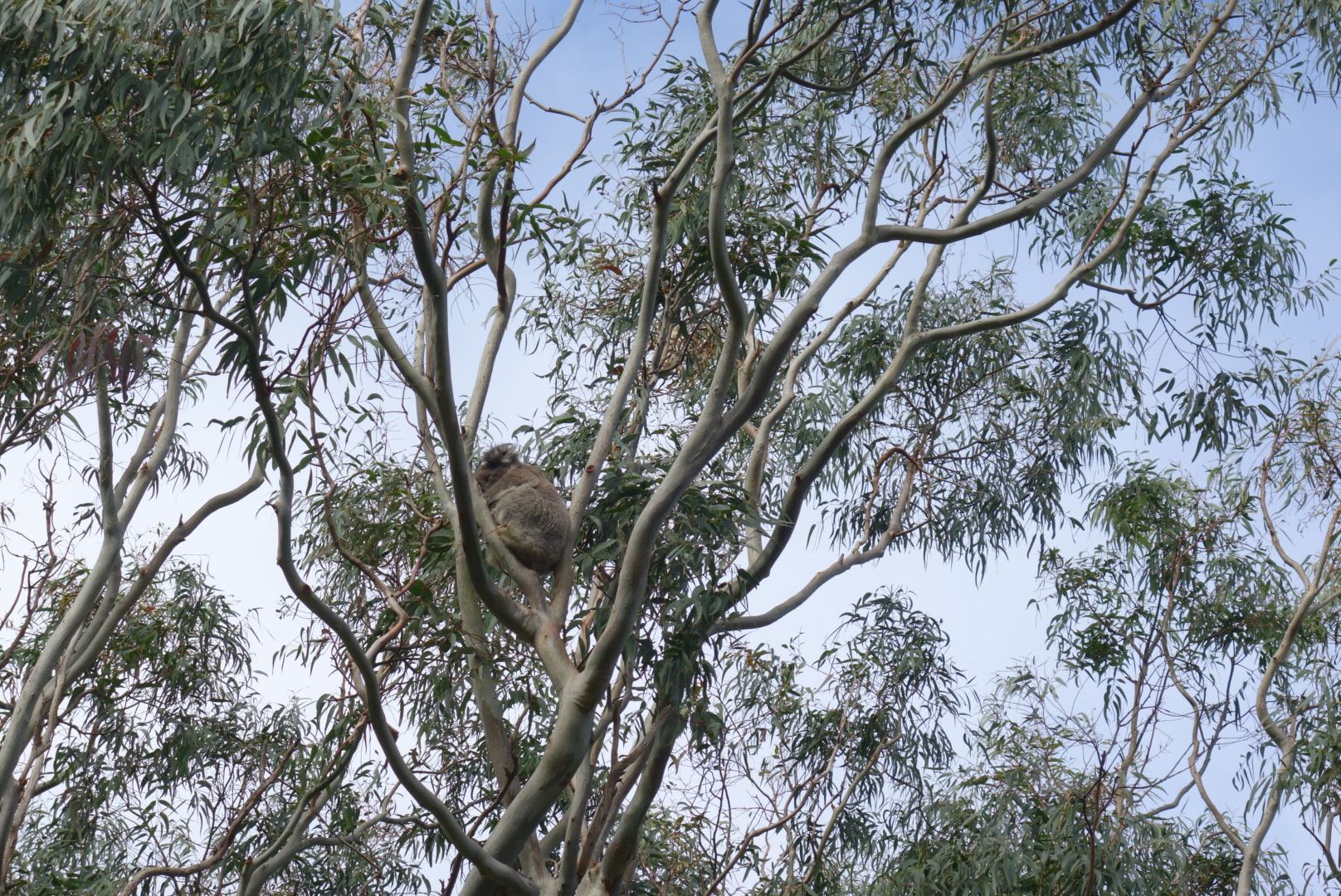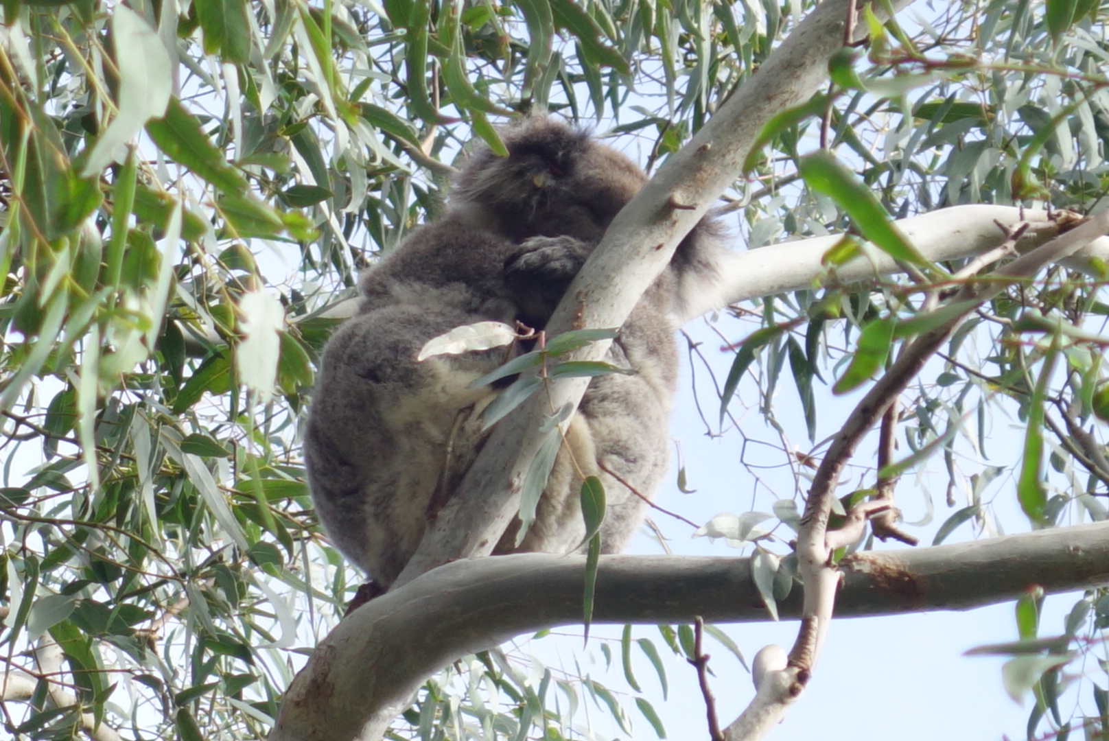 Natürlich kann ich es nicht lassen nach dem Essen noch mal auf eigene Faust auf die Suche nach anderen Koalabären zu gehen und nur etwa 20 m von unserem Rastplatz entfernt sehe ich in einem Baum in etwa 3 Meter Höhe noch einen von diesen kleinen Tierchen.