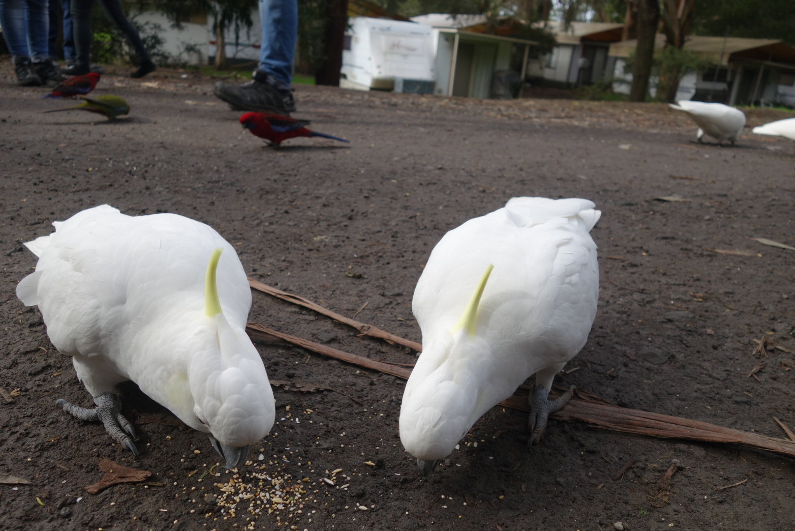Was soll ich sagen?! Kaum sind wir aus dem Bus ausgestiegenwerden wir auch schon von Kakadusund Papageien belagert.