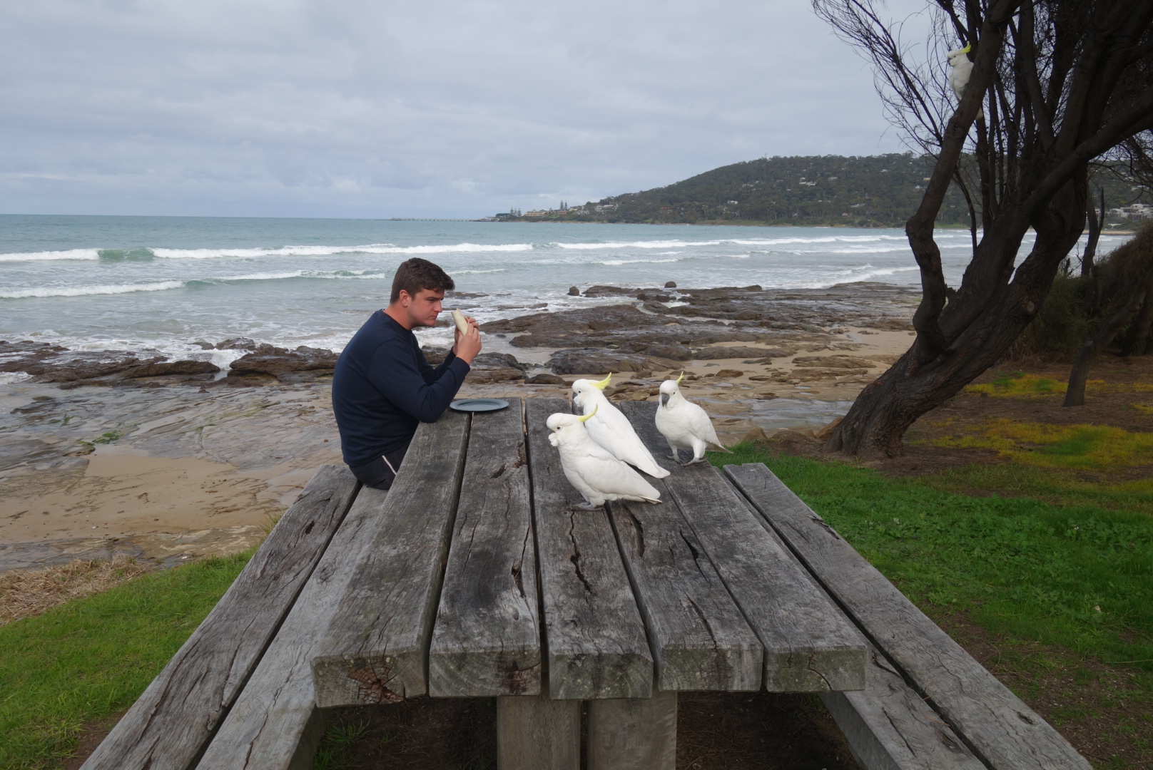 Wobei wir auch später bei unserer Mittagspause besuch von neugierigen und anscheinend hungrigen gefiederten Kollegen bekommen.