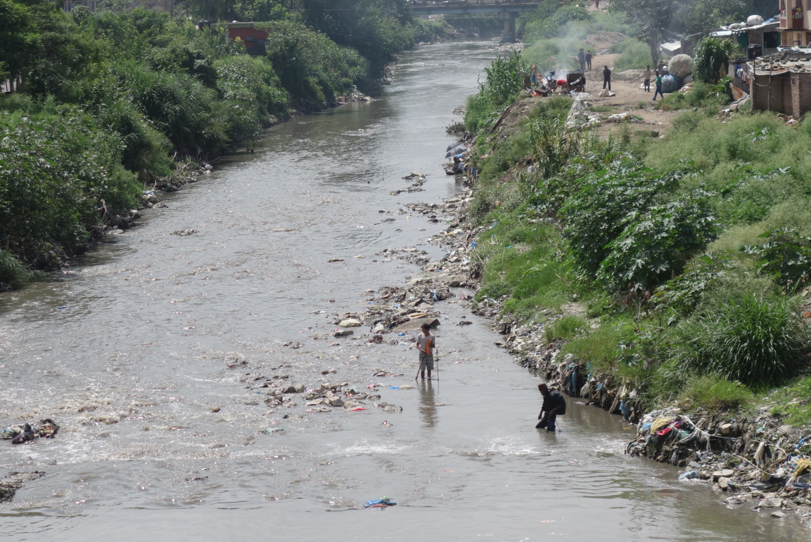 Der Gestank ist richtig beißend, das Wasser hat ein ekliges Braun und am Ufer türmt sich der Müll.