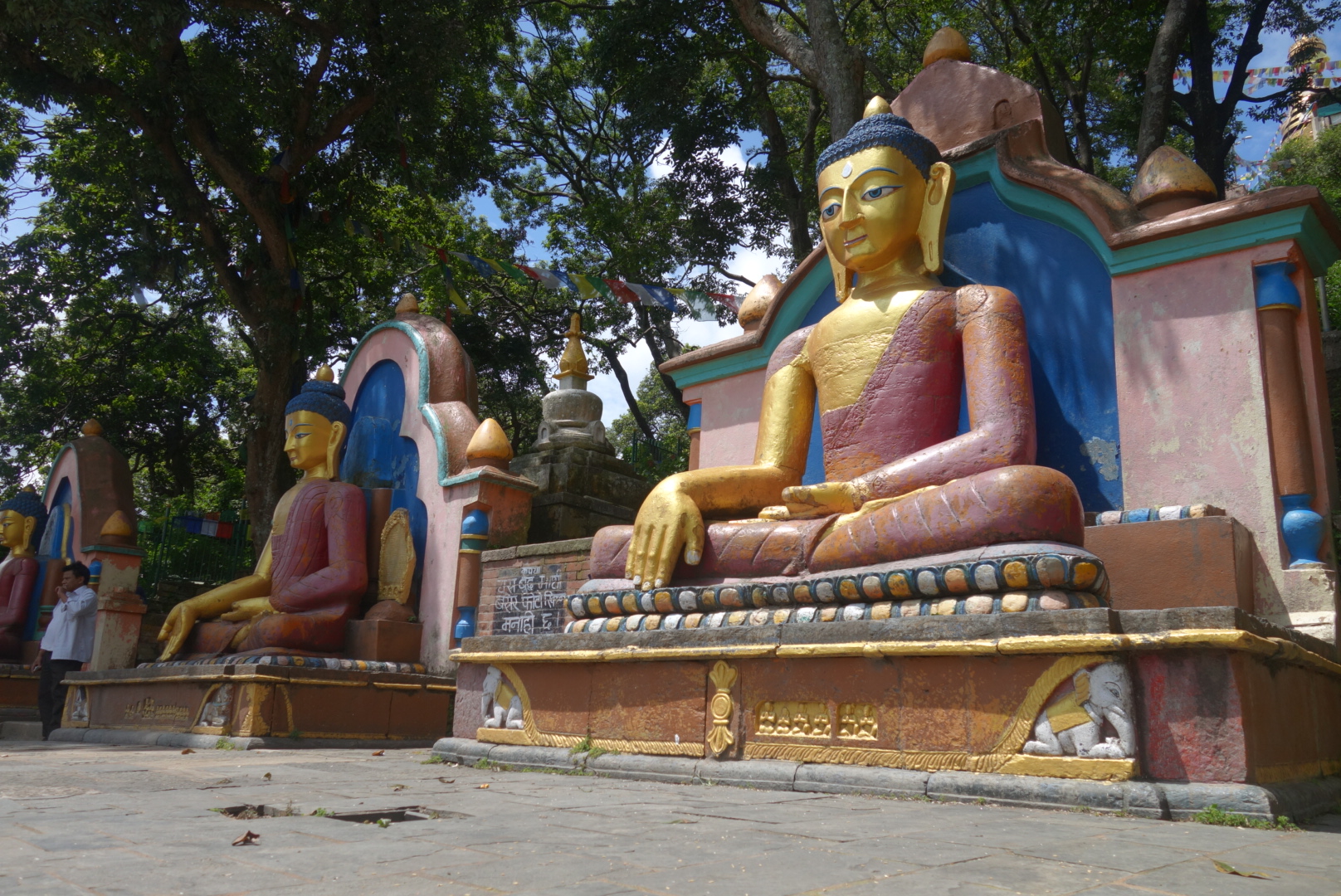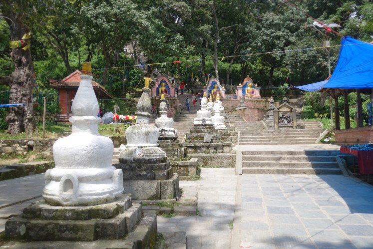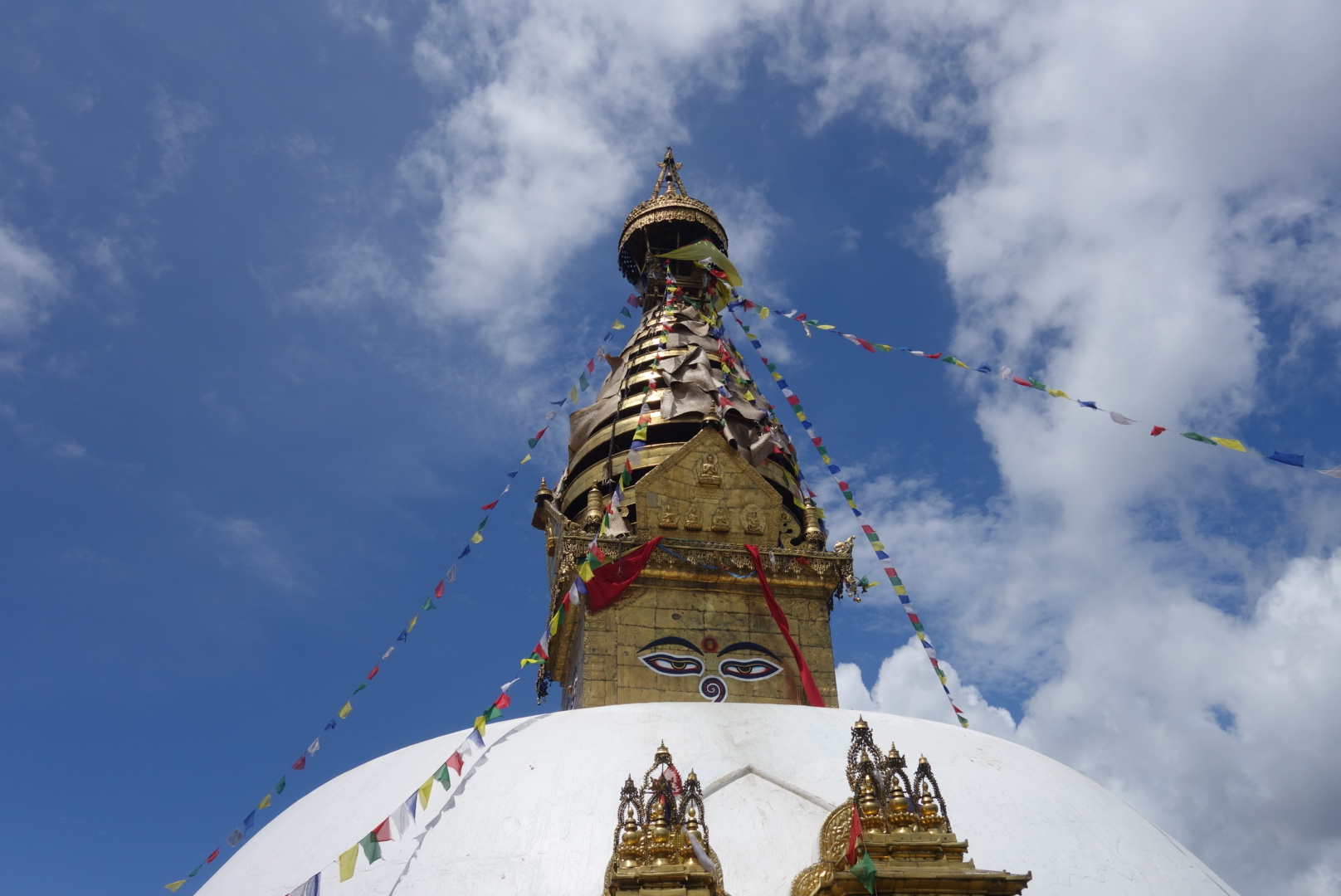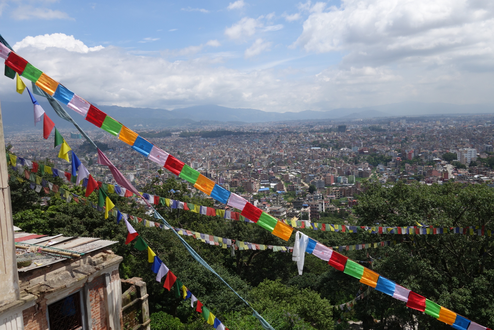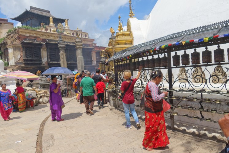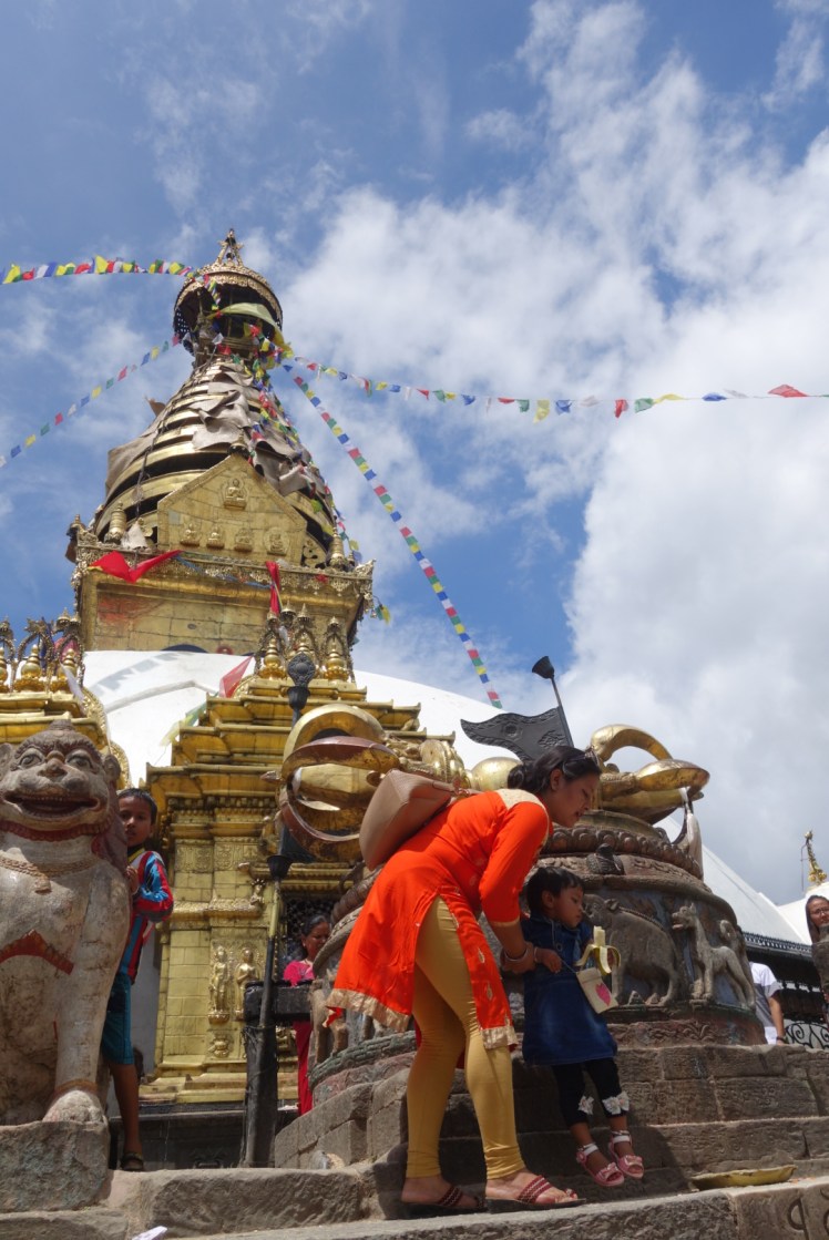 Oben angekommen hat man auf jeden Fall erst mal einen tollen Blick über das Kathmandu Tal und auch das Treiben der Gläubigen hier oben ist ziemlich beeindruckend.