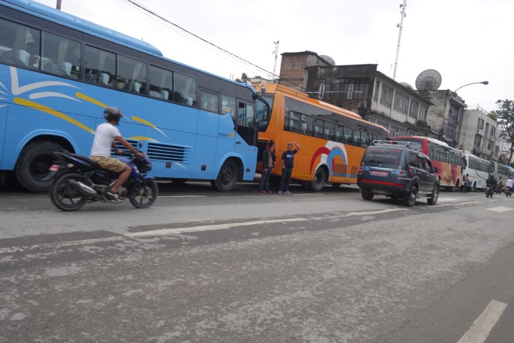 An Hand eines Fotos unseres Busses (ein schöner blauer) weiß der Taxifahrer auch welches der ist, der uns heute nach Pohkara bringen soll.😊