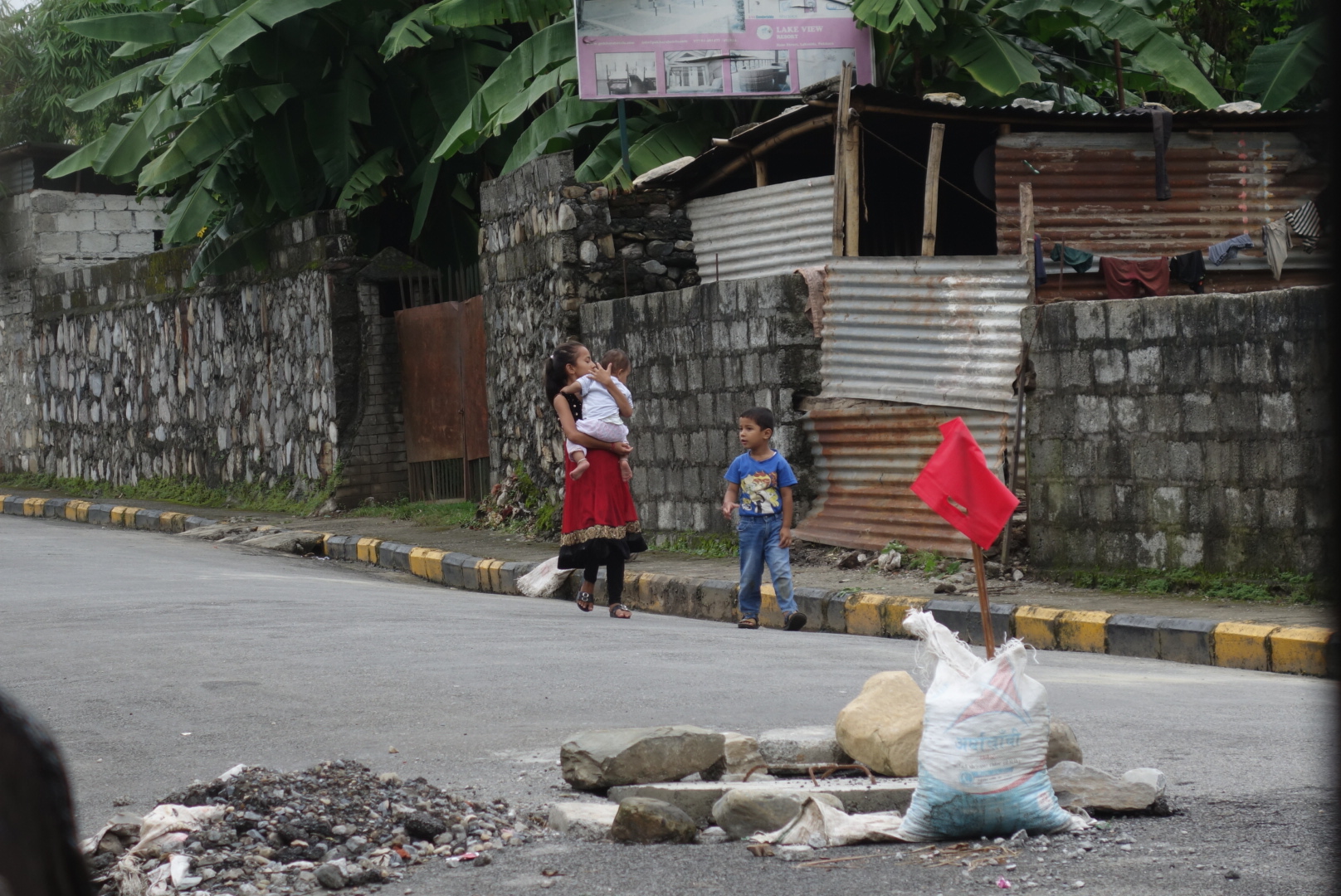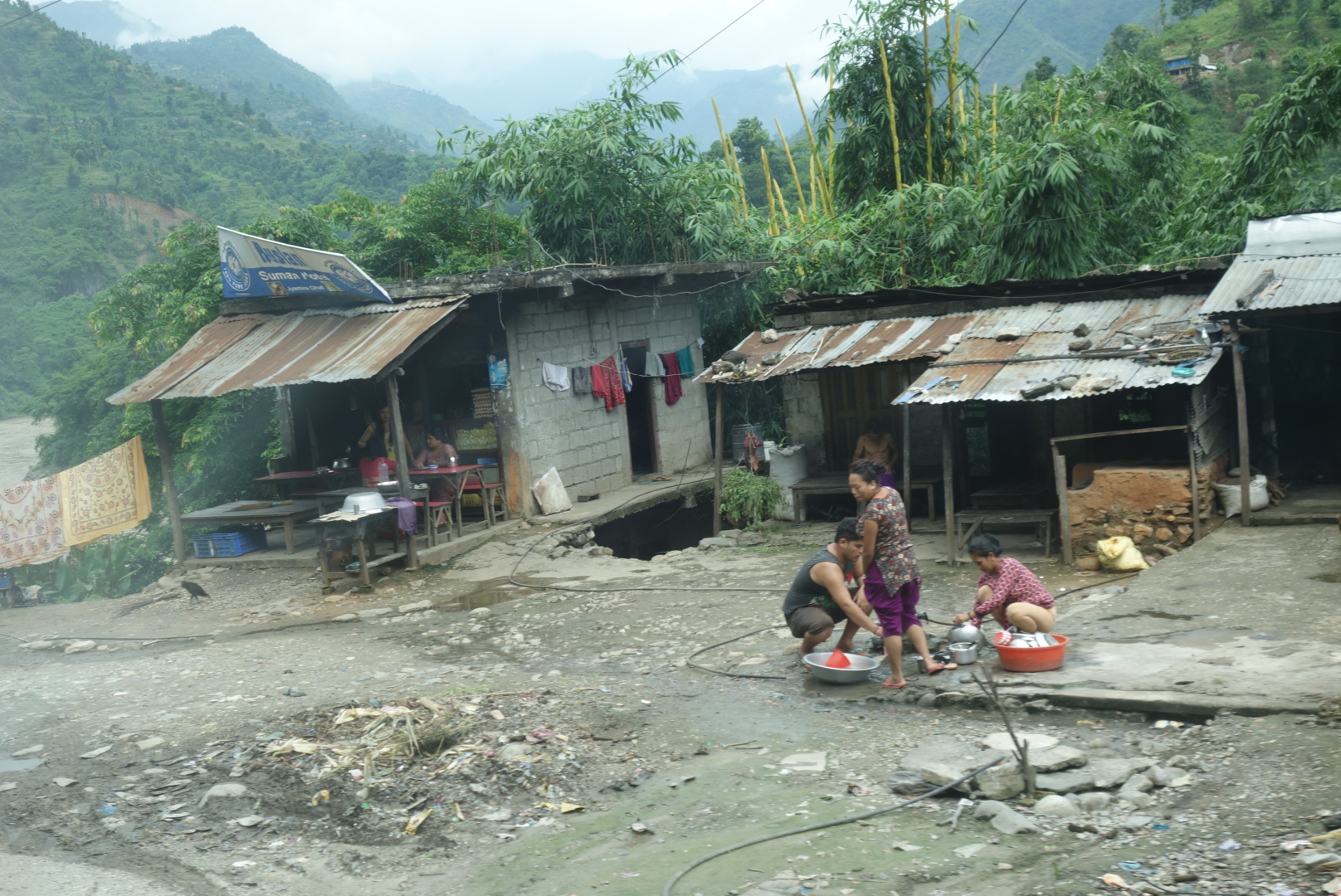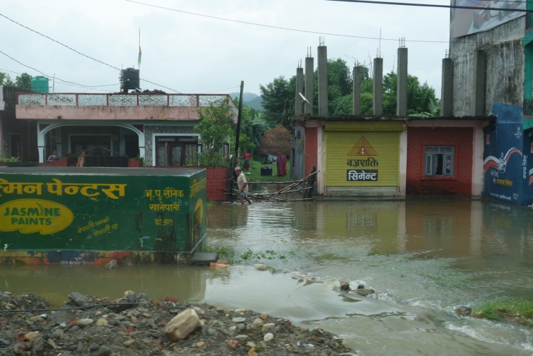 Die letzten Kilometer bekommen wir dann auch zu sehen, warum im Moment nicht die beste Zeit ist Nepal zu besuchen…..die Saison beginnt nämlich erst in ein paar Wochen, im Moment ist noch Monsun und die Menschen hier bekommen nasse Füße.😉