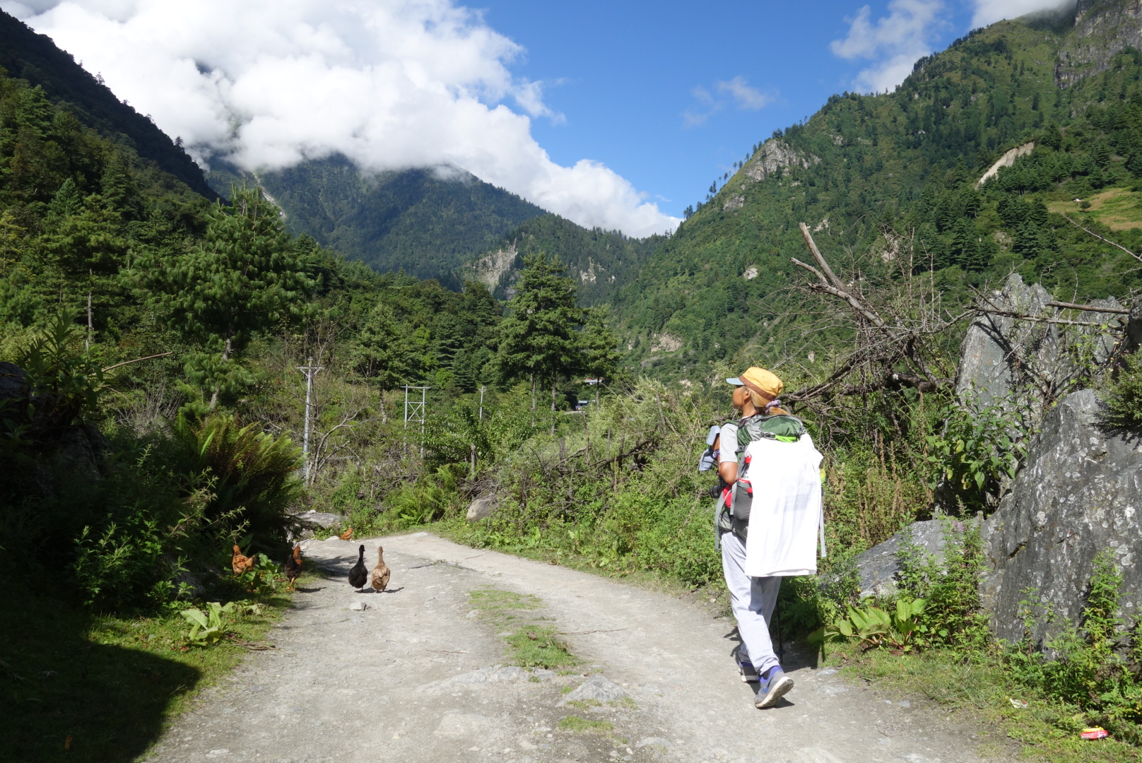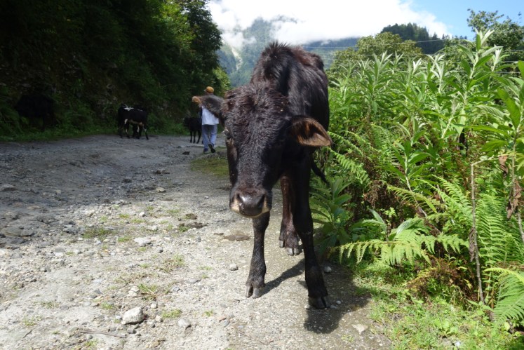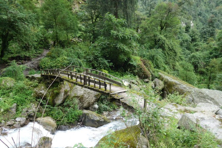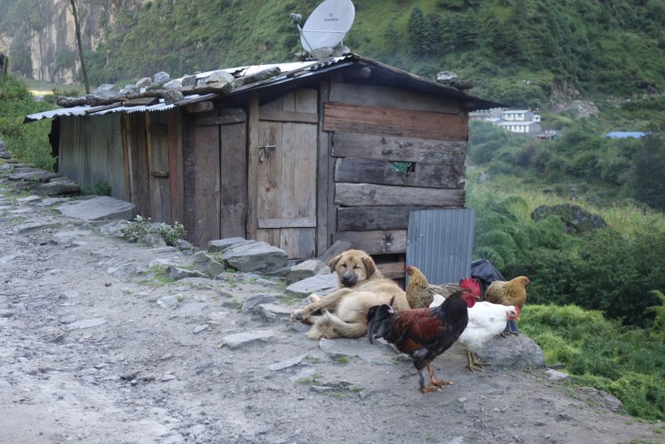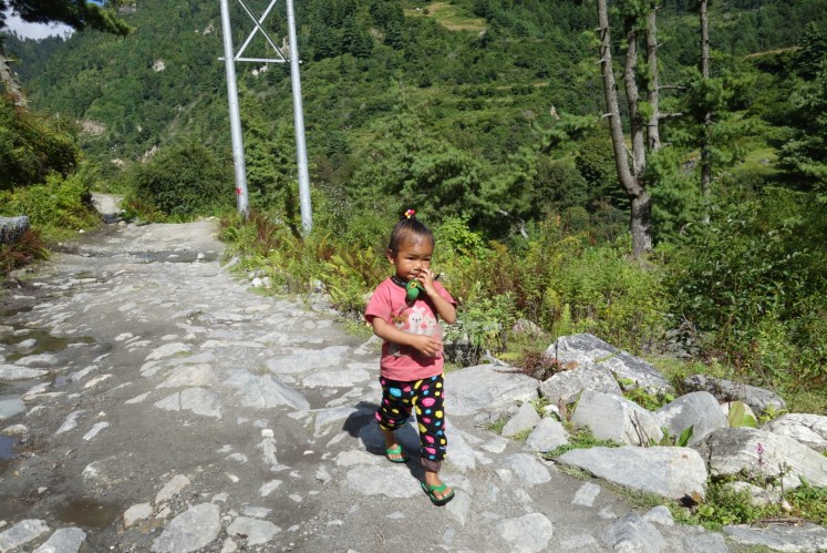 หมู่บ้านที่สามคือThanchowk ตอนแรกบอสบอกจะเดินทางราบจะพักกันที่ข้างล่างที่หมู่บ้าน Latamarang ไม่ขึ้นเขาเพราะจะเหนื่อยมาก พอไปๆมาๆ สับสนเส้นทาง เลยมาจบที่เส้นขึ้นเขามา Thanchowk ระยะทาง 6 กม. ที่ความสูง 2570ม. ปีนขึ้นเขาอย่างเดียว แต่ได้เจอวิวสวยๆจากน้ำตก และทางที่เค้าสร้างมาใหม่อยู่ปากเหวสูง เมื่อถึงหมู่บ้าน เด็กๆเห็นก็จะเข้ามาขอขนมจากเราตลอดเส้นทาง โดยเฉพาะกลุ่มเด็กผู้ชาย เหมือนเดินไกลมาก ทางเป็นทางชันขึ้นเขา พากันเดินจนขาลาก เรากะจะหาร้านอาหารนั่งพักทานข้าวเที่ยง จนแล้วจนเล่า เดินผ่านหลายร้านแต่ไม่เข้า จนต้องเดินหิวโซ จะพักทานขนมก็ไม่พากันพัก จนเจอหนุ่มอินเดียผู้เดินช้าสุดรองจากพวกเราสองคน เราหยุดพักคุยกันสักแปปแล้วหนุ่มอินเดียกับแบ่งปันเค้กให้ทาน เพิ่มพลังงานให้เราได้เดินต่อไปเปราะหนึ่ง