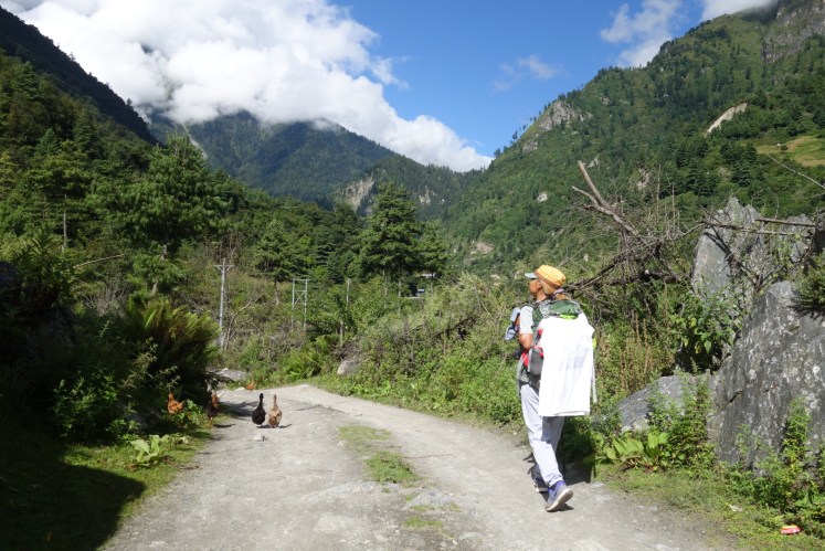 วันที่ 9 กันยายน 2559 วันนี้เรานัดทานอาหารเช้า 6.30น. ทานเสร็จเก็บข้าวของ ออกเดินทางก็ 8.15น. หมู่บ้านแรกทางเดินง่ายๆ ระยะทางสั้นๆ แต่ก็ได้เหงื่อเพราะแดดออกแต่เช้า หมู่บ้านแรกที่ต้องผ่านคือ Bagarchap ระยะทาง 2กม. ที่ความสูง 2160ม. ผ่านจากจุดนี้เราเจอหนุมแคนนาดาที่เราพบที่โรงแรมในหมู่บ้าน Jagat แค่กล่าวสวัสดีแล้วเค้าก็เดินแซงเราไป