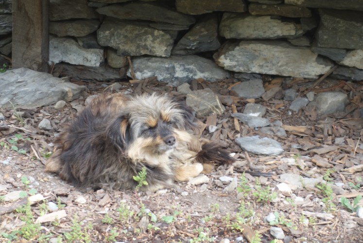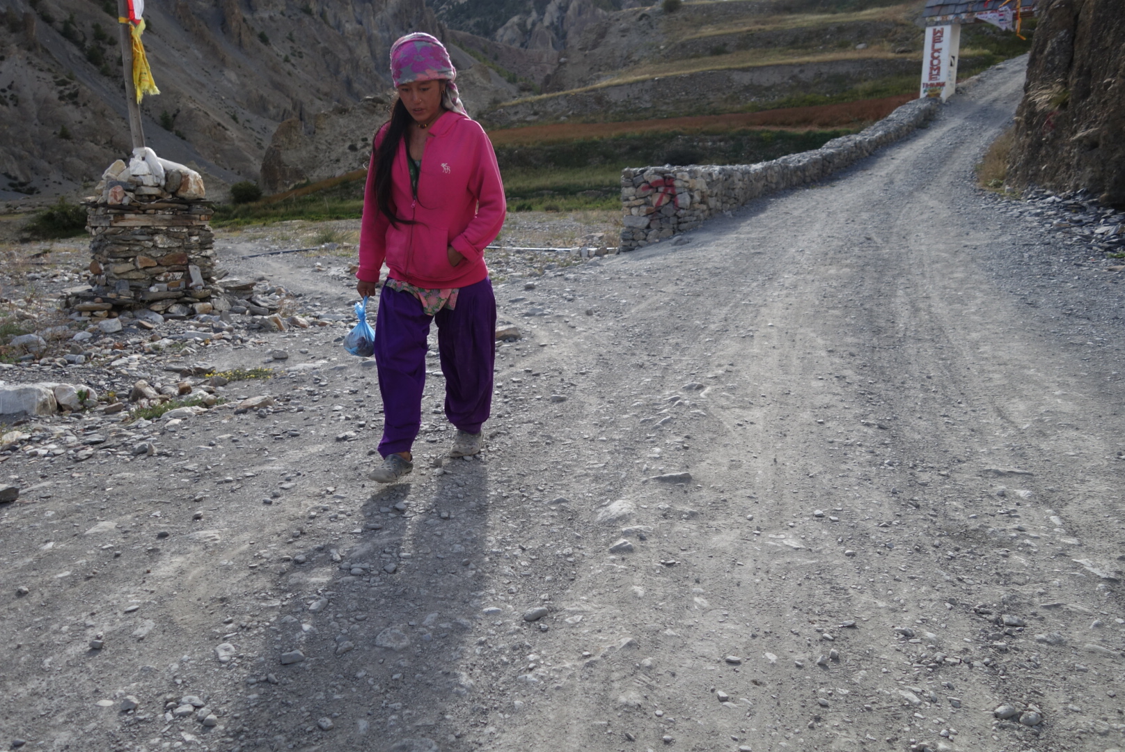 เมื่อไปถึงหมู่บ้าน Humde เราใช้เวลาสองชั่วโมงกับระยะทางสิบกิโลเมตร ตอนแรกเรากะจะหยุดพักหาอะไรทานกัน แต่พอเดินตามไกด์ของกลุ่มหนุ่มสาวเยอรมัน สุดท้ายเค้าไม่ได้หยุดพัก บอสก็ไม่หยุดพักเหมือนกัน จนไปถึงจุด Check Post เราได้หยุดพัก แต่ไม่มีอะไรให้เราซื้อเลย สรุปคือต้องเดินไปต่อโดยปราศจากน้ำดื่ม ระหว่างทางเส้นนี้คือเริ่มปวดหัวหนักมาก อารมณ์เหมือนเดินอยู่ในผวังค์ ไม่รู้ว่าเดินผ่านจุดนั้นได้อย่างไร บอสบอกเดี่ยวข้างหน้ามีร้านขายของอยู่ เดี๋ยวเราหยุดพักดื่มน้ำกันที่นั่น สุดท้ายก็ไม่มี เพราะร้านปิด เราต้องเดินไปต่อ เดินหยุดๆ หลายรอบมาก เหมือนจะไปไม่ไหวแล้วแต่ก็สู้เดิน ขาก้าวไปข้างหน้า แต่สมองเหมือนเบลออยู่เลย พอเราเดินถึงหมู่บ้านแห่งหนึ่ง เราจึงหยุดพักทานข้าวกัน ก็ไปเจอหนุ่มสาวชาวเยอรมันอีก คราวนี้อาการปวดหัวหนักมากจนอยากจะร้องไห้ออกมา แต่ก็ต้องอดไว้ เราสั่งอาหาร และไกด์ของหนุ่มสาวเยอรมันแนะนำให้ทานซุปกระเทียมช่วยได้มาก บอสเลยสั่งให้ ส่วนบลไปเข้าห้องน้ำ ห้องน้ำนี่ก็เชี่ยจริงๆ หาที่น่านั่งปลดทุกข์สบายๆ อากาศดีดีไม่มี ต้องกลั้นหายใจหลับตาทุกครั้งที่เข้า กลับมาที่โต๊ะอาหาร หนุ่มสาวเยอรมันก็สนุกสนานกับการนั่งรออาหาร บ้างก็นั่งเล่นไพ่ บ้างก็เล่นกับกับลูกสาวเจ้าของร้าน ส่วนบลนั่งกุมขมับ บอสก็นั่งเป็นห่วง เรานั่งรออาหารอยู่อย่างนี้ชั่วโมงกว่าๆ ทุกคนต่างมีกิจกรรมต้องทำ เลยไม่ได้สนใจว่าต้องรออาหารนานมาก เมื่ออาหารมาบลก็จัดการซุปตามด้วยข้าวผัดจานโต ทานจนจะอ้วกเพราะต้องทานให้หมดจาน จากนั้นเราก็บายๆ หนูน้อยผู้สร้างสีสันให้กับการรอคอยอาหารจานสโลวของพ่อเค้า บอสตั้งเป้าไว้ว่าเราจะเดินไปจนถึงหมู่บ้าน Bhraga แล้วจะนอนพักกันที่นั่น เพราะกลัวว่าบลจะเดินไปต่อไม่ไหว แต่เมื่อแดดออกอาการปวดหัวของบลก็หายเป็นปริดทิ้ง เดินอย่างมีความสุข เหมือนไม่มีอะไรเกิดขึ้น บอสเห็นแล้วงง คือเมื่อกี้อาการดูยังกับจะตายอยู่เลย แต่ตอนนี้กลายเป็นคนใหม่เพียงแค่เสี้ยวนาที