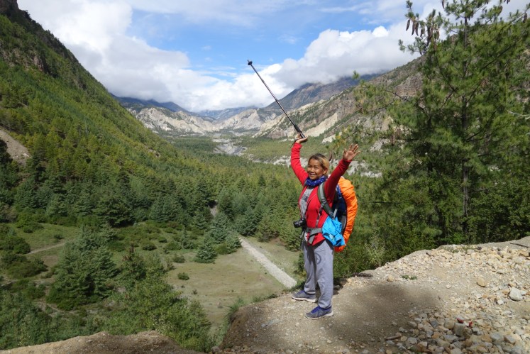 วันที่ 11 กันยายน 2559 วันนี้เราเริ่มเดินทางเวลาเดิม 8.10น. โดยเราเปลี่ยนแผนการณ์ใหม่ จากที่ตั้งใจว่าจะเดินขึ้นเขาไปที่หมู่บ้าน Ghyaru ที่ความสูง 3730ม. แน่นอนว่าเส้นทางนี้ค่อนข้างยากทีเดียว เพราะดูจากแผนที่แล้วทางชันขึ้นมาก แต่เนื่องด้วยที่บลรู้สึกไม่ค่อยสบาย เนื่องจากความสูง ที่ร่างกายยังปรับตัวไม่ทัน บวกกับอากาศหนาว ทำให้ปวดหัว เราเลยเปลี่ยนแผนเดินลงไปยังหมู่บ้าน Lower Pisang ซึ่งอยู่ด้านล่างของ Upper Pisang สามารถมองเห็นจากด้านบน เดินลงไปใช้เวลาแค่ 20นาที ระหว่างทางด้านล่างนี้จะเป็นทางเดินง่ายๆ มีเดินขึ้นเขาบ้างสลับกับทางราบ ไม่เหนื่อยมาก บวกกับเช้าวันนี้ฝนตกปรอยๆ หลายกรุ๊ปจึงตัดสินใจเดินทางเส้นนี้ เราออกเดินทางลงไปยังหมู่บ้าน Lower Pisang เพื่อกะจะไปเติมน้ำดื่ม แต่กลายเป็นว่าร้านยังไม่เปิด ณ ตอนนี้เรามีน้ำอยู่ก้นขวด ที่สำคัญร่างกายบลต้องการน้ำมากตลอดเวลา เพราะการอยู่ที่สูงร่างกายต้องการปรับสภาพร่างกายเพื่อรับกับสภาวะออกซิเจนต่ำ จึงต้องดื่มน้ำมากๆ แต่สุดท้ายเราไม่มีน้ำเพิ่มเติม บอสสละน้ำที่เหลือให้บลคนเดียว โดยบลจะได้แค่จิบเบาๆกันคอแห้งเท่านั้น ระหว่างทางก็จะเจอกลุ่มเดิมๆที่เราเคยโดนแซงตลอด ระหว่างนี้อาการปวดหัวบลมีมาเรื่อยๆ แต่การเดินต้องเดินช้าๆ เพื่อไม่ให้ร่างกายเหนื่อยเกินไป แต่การเดินขึ้นทางชันแต่ละครั้ง แค่สามก้าวก็หอบแล้ว ต้องหยุดพักทุกสองนาที บอสก็พยายามพยุง คอยดันให้ไปต่อ
